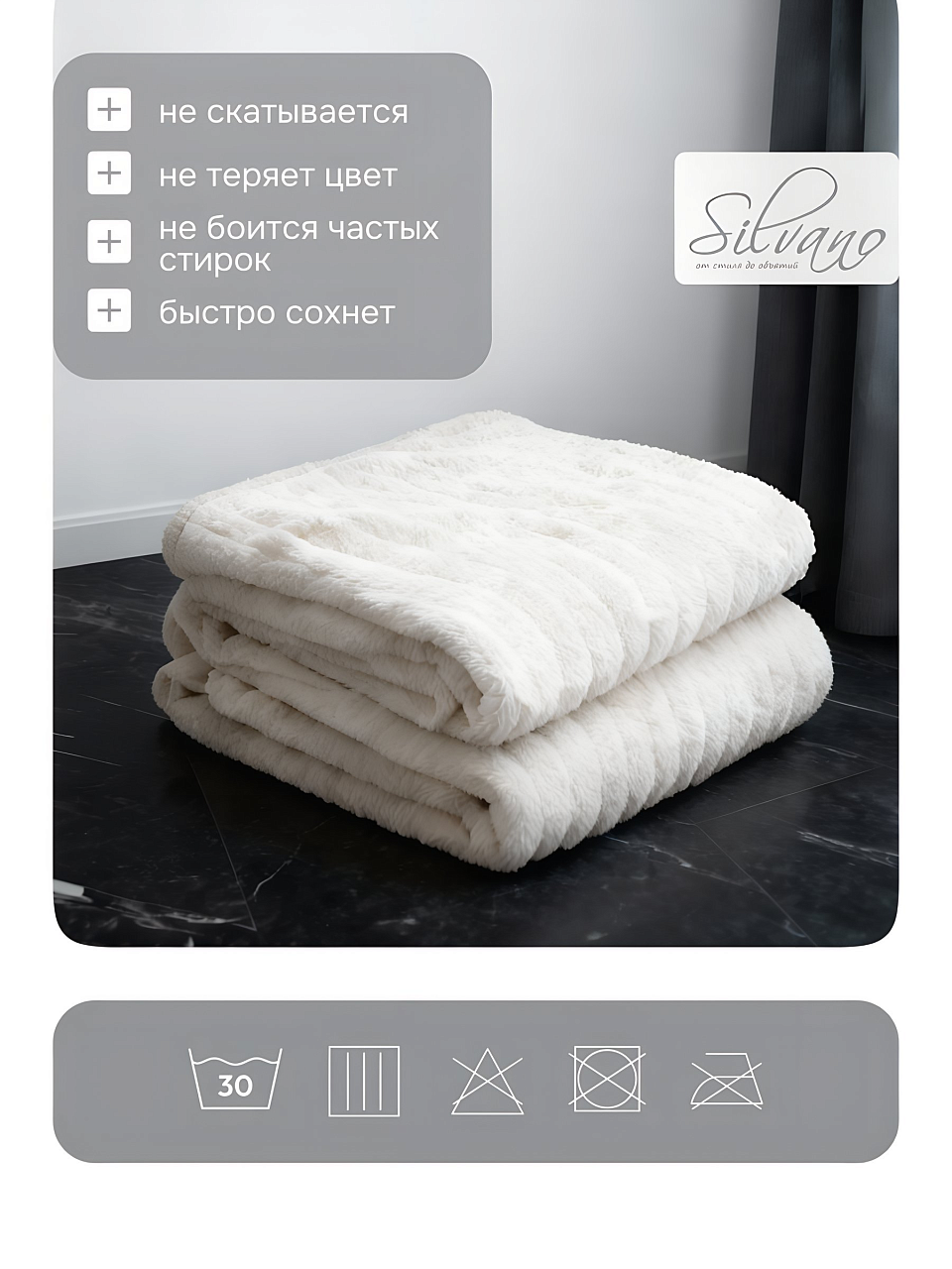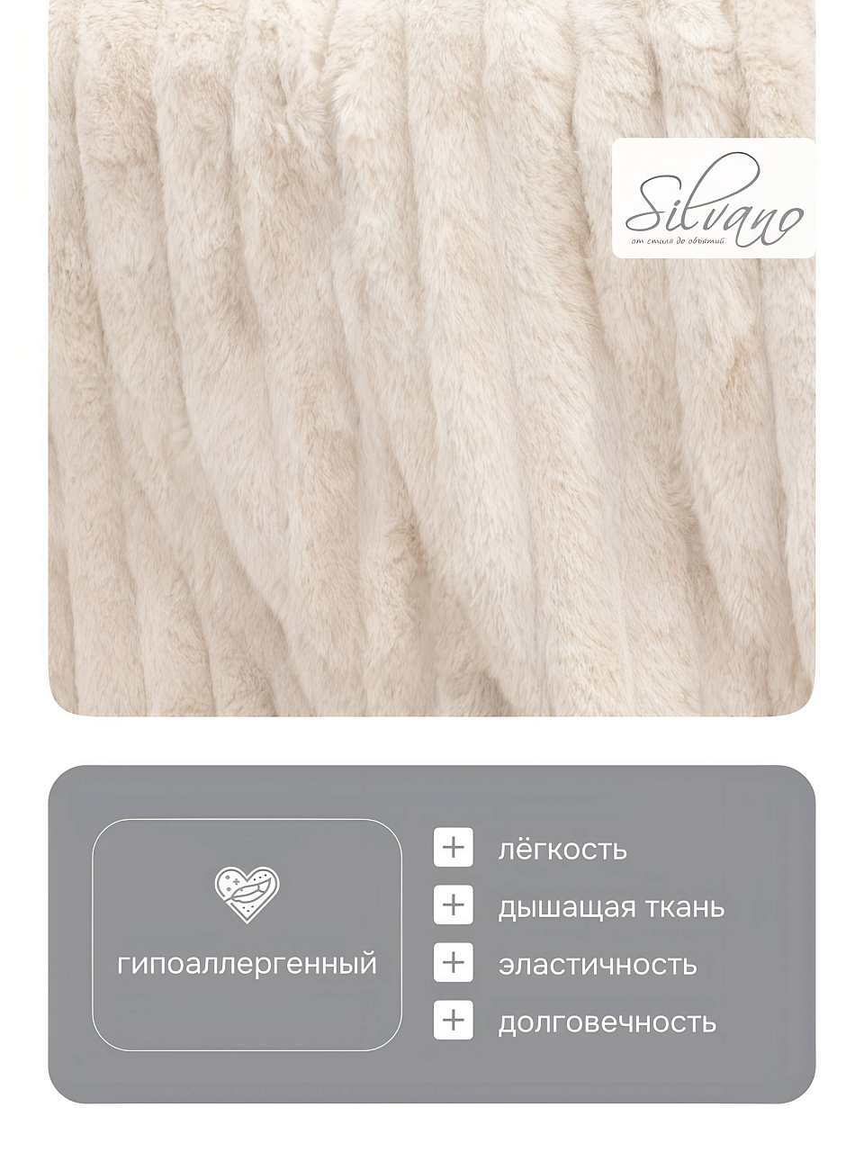 Плед евро Silvano №81 — выбор для тех, кто ищет недорогой, но тёплый и приятный на ощупь плед для дома или дачи. Благодаря современному велсофту (короткий, густой ворс из 100% полиэстера), изделие отлично сохраняет тепло, не вызывает раздражения, не скатывается и сохраняет форму даже после многократных стирок. Кремовый цвет универсален: он легко впишется в любой интерьер, добавит свет и ощущение чистоты.