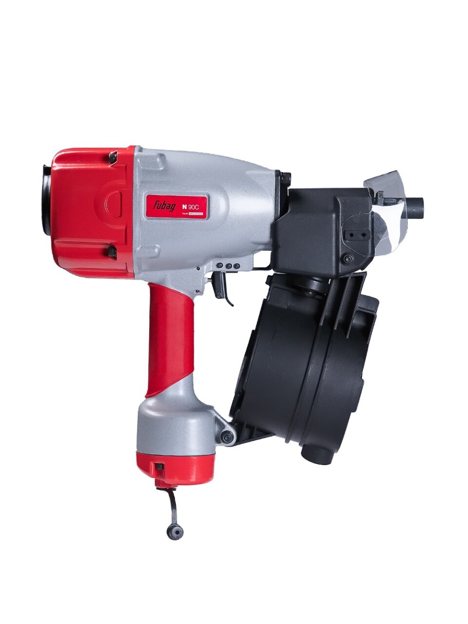 Барабанный пистолет Fubag N90C ускоряет работу за счет вместимости и автоматической подачи гвоздей, что особенно удобно при больших объемах монтажа.