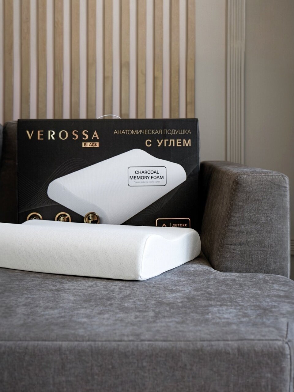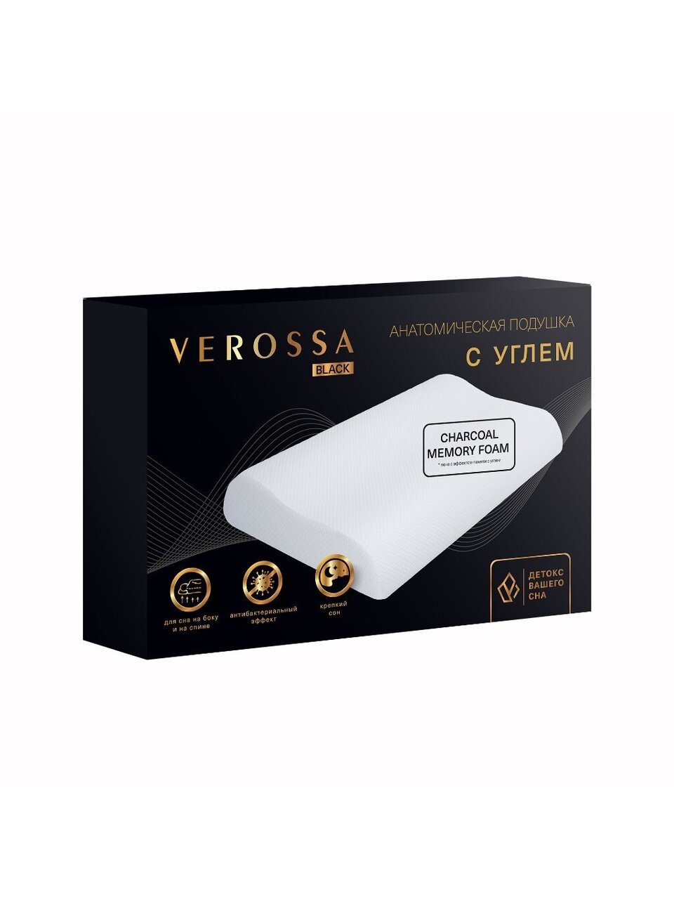 Ортопедическая подушка Verossa 40×60 см с эффектом памяти и углем: мягкая поддержка, свежесть сна и премиум-материалы для здоровой осанки.