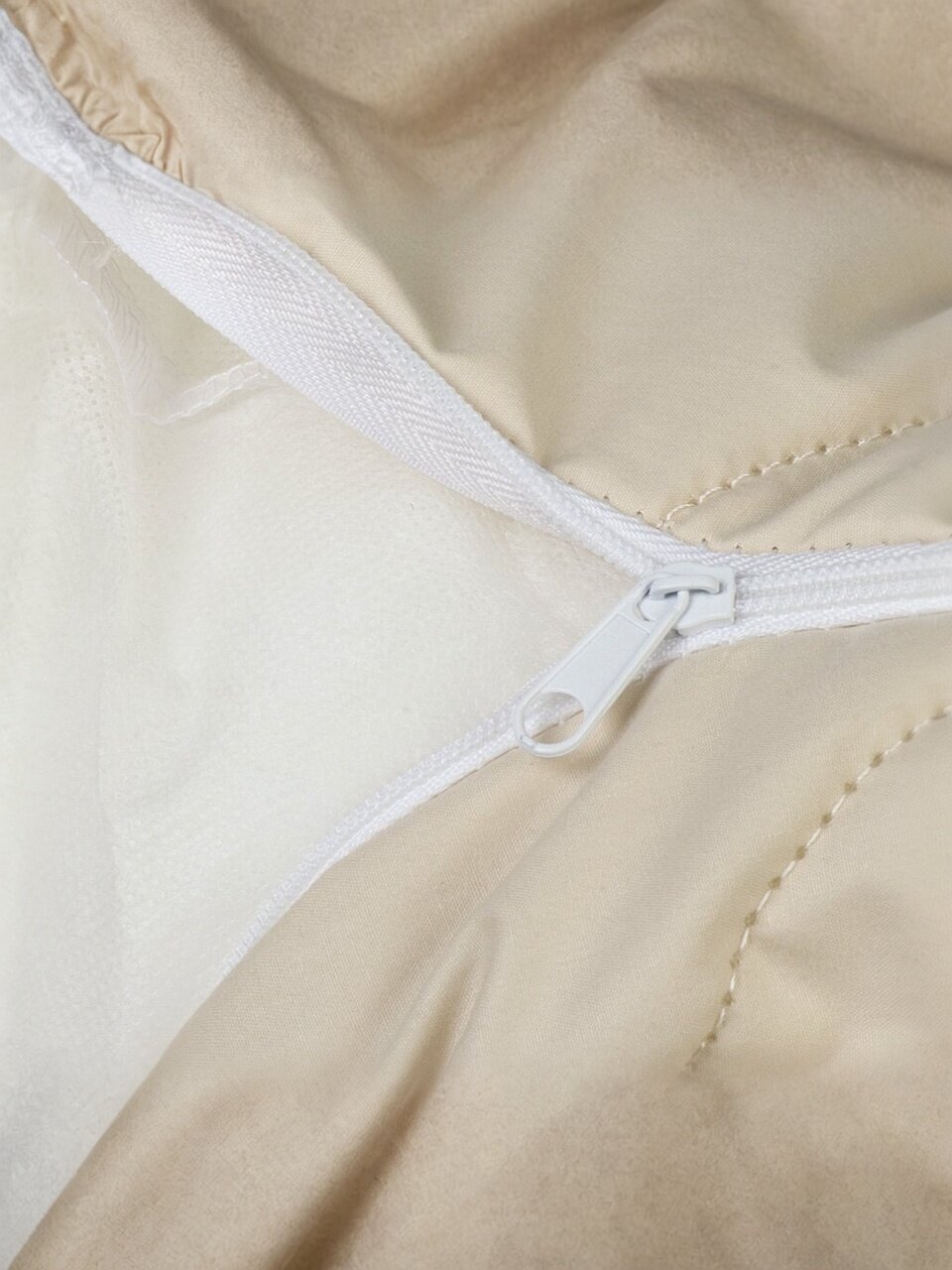 Чехол из 100% хлопка гипоаллергенен, наполнитель — полиэфирное волокно с добавлением овечьей шерсти, что снижает риск аллергии по сравнению с полностью натуральными наполнителями.
