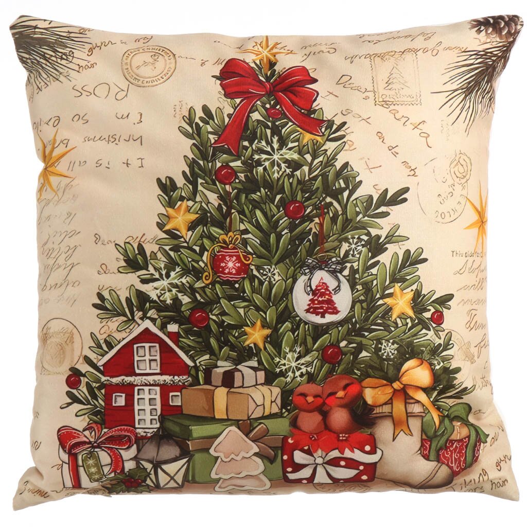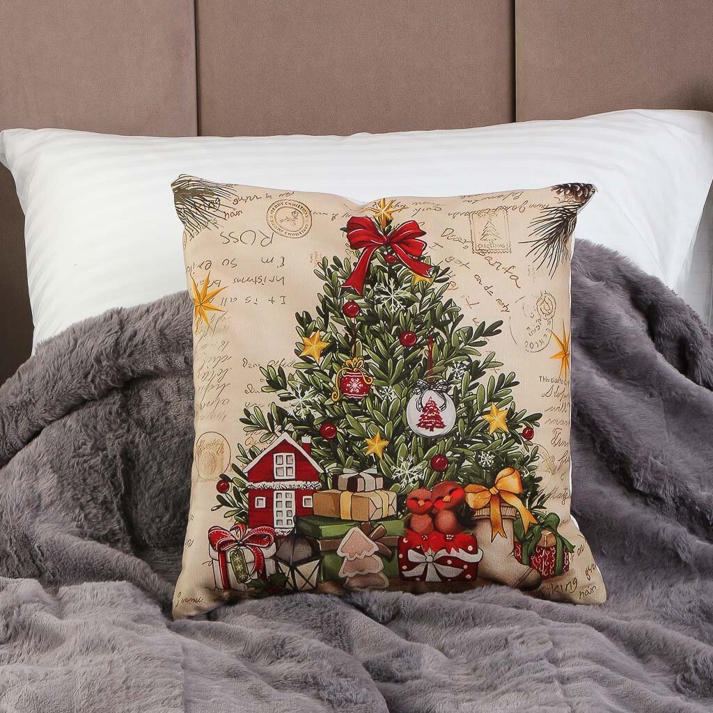 Декоративная подушка 38х38 см «Елка» из микрополиэстера: уют для дома и дачи, стильный подарок на Новый год, мягкость и легкий уход по доступной цене.