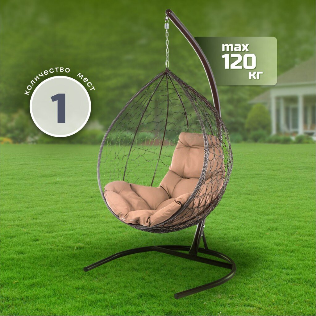 Вы можете приобрести «Подвесное кресло Кокон, 1-мест, 75х106х117 см, 120 кг, M-Group, коричневое, ротанг, подушка бежево-песочная, 11020201» и другие товары в нашем интернет-магазине в Твери по низким ценам и с бесплатным самовывозом.
