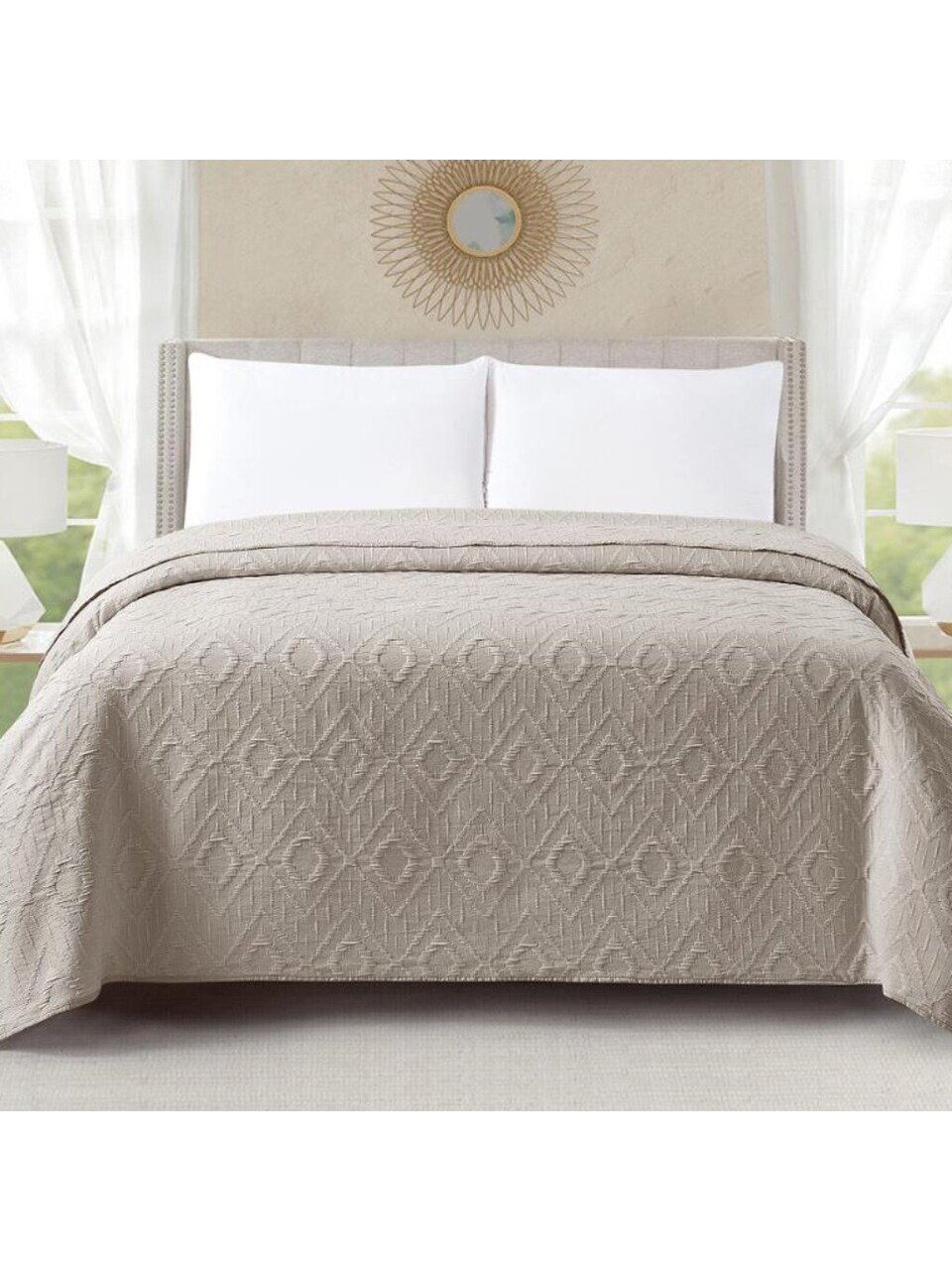 Вы можете приобрести «Покрывало евро, 240х260 см, 100% полиэстер, стеганое, Cleo, Caroline Узоры, песочно-серое, 240/011-CN» и другие товары в нашем интернет-магазине в Обнинске по низким ценам и с бесплатным самовывозом.