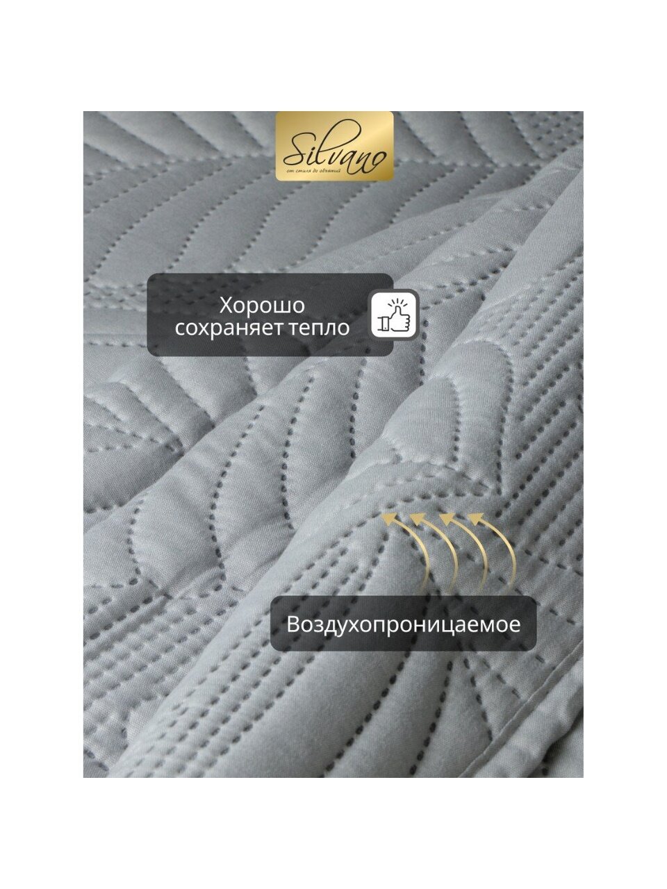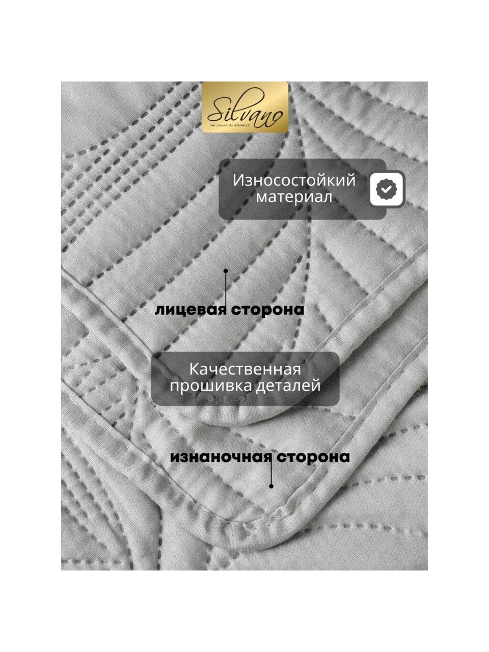 Покрывало выполнено из 100% полиэстера, что гарантирует долговечность и простоту в уходе. Стальной цвет, представленный на сайте как серый, легко впишется в любой интерьер, подчеркнув его минималистичный стиль. Стеганая структура не только добавляет изысканности, но и обеспечивает дополнительное тепло и комфорт.
