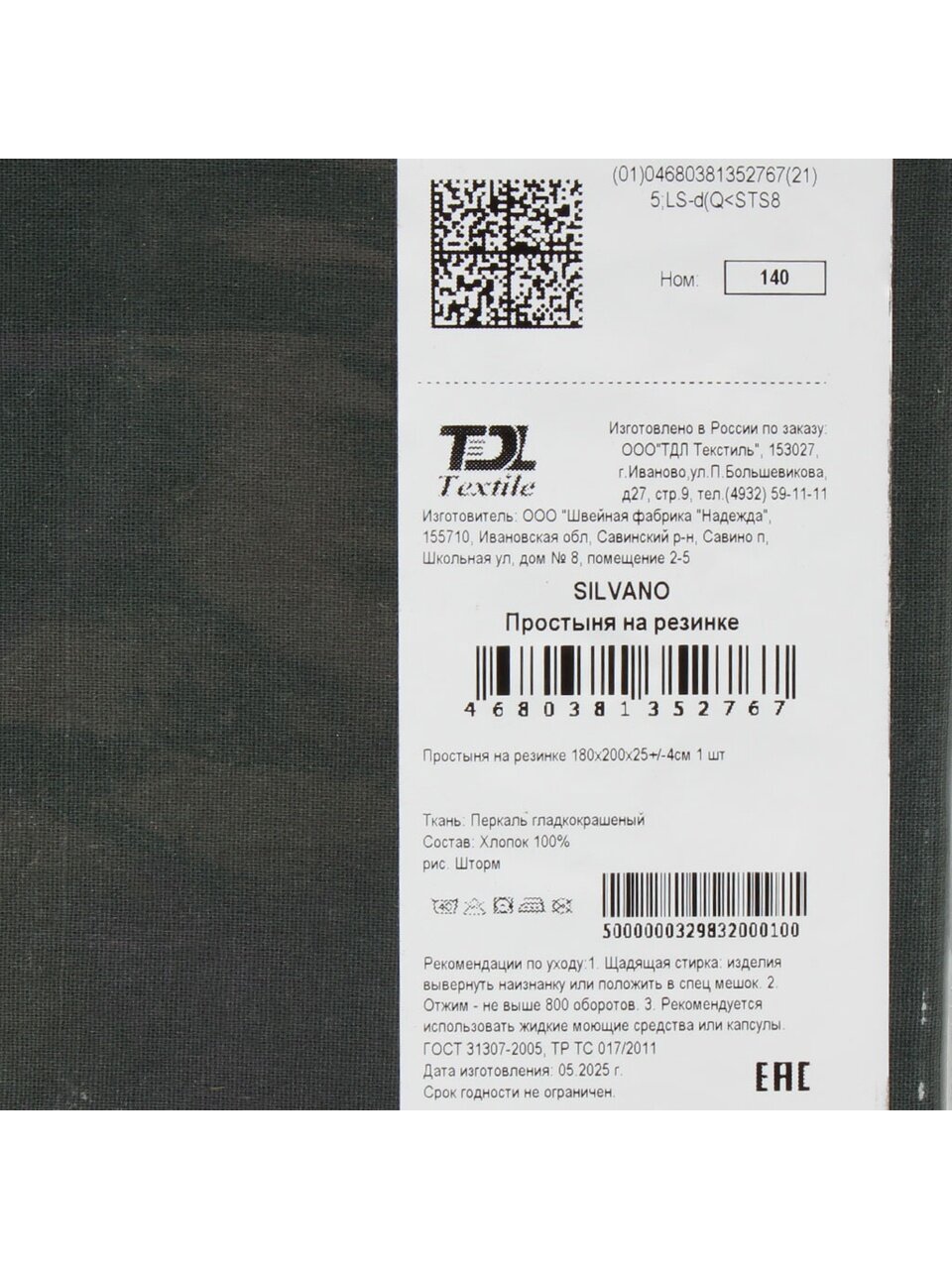 Простыня на резинке Silvano Шторм 180х200х25 см — 100% хлопок перкаль, долговечность и комфорт для вашего сна. Идеальный выбор для дома и подарка.