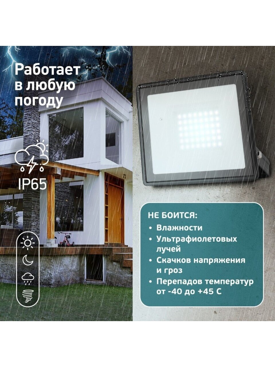 - Прожектор устойчив к механическим воздействиям, защищен от дождя и пыли, работает при широком диапазоне температур (от -40 до +45).