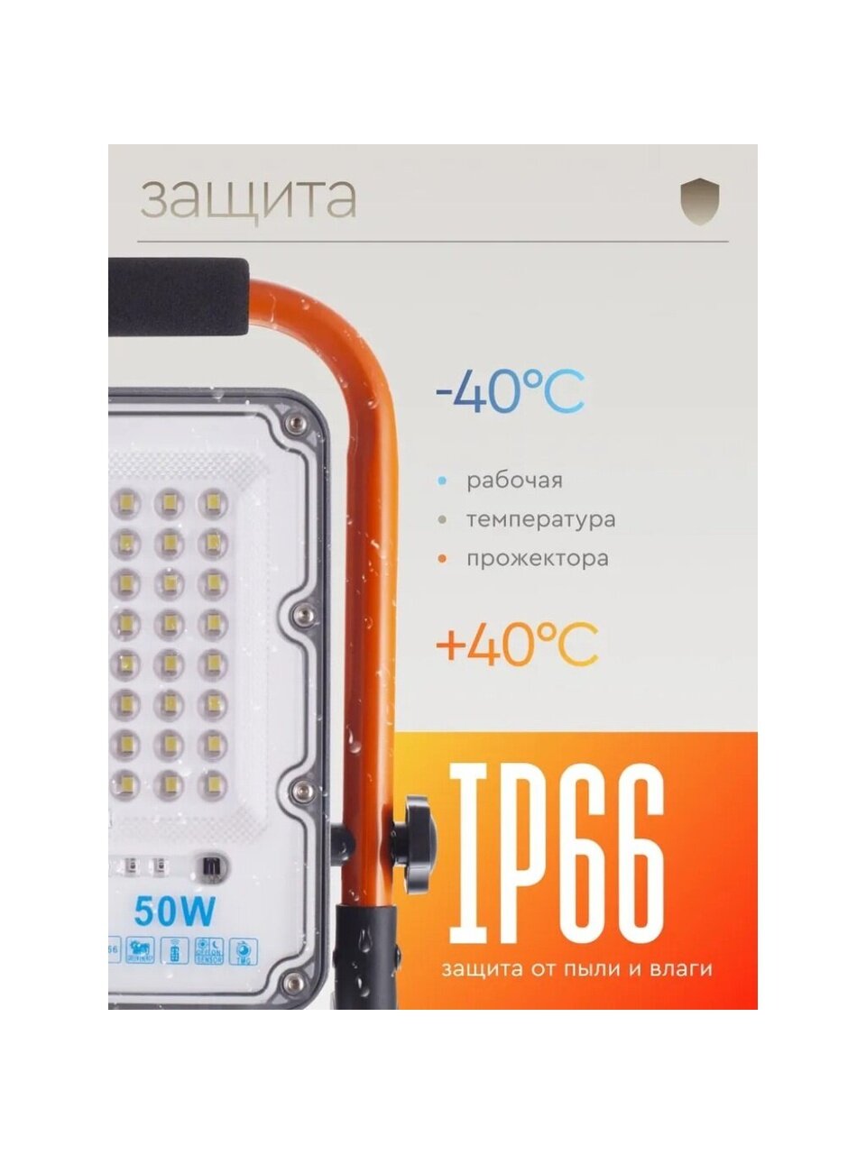 - Высокая степень защиты IP66: полная защита от пыли и сильных струй воды.