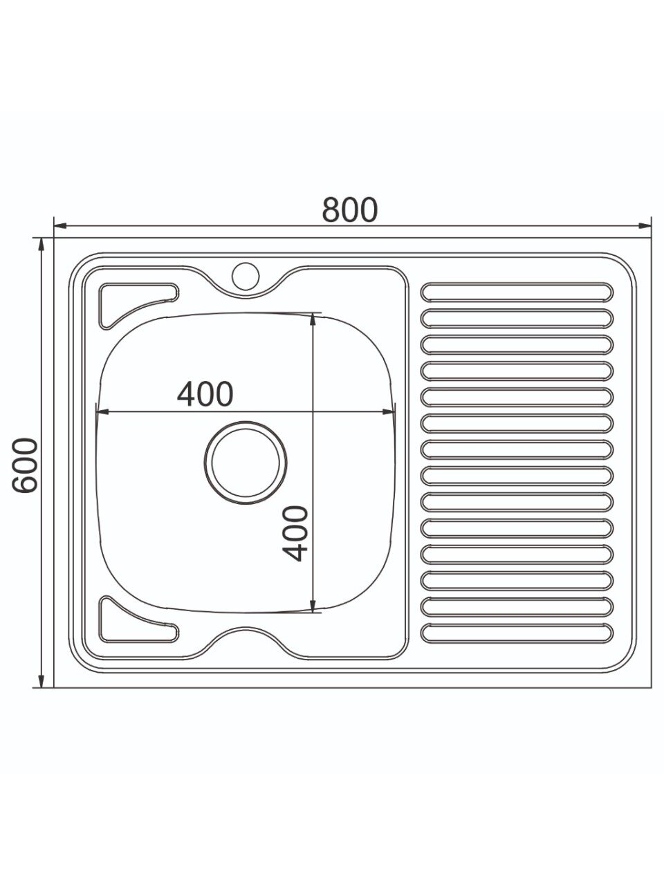 Данная мойка Mixline имеет размеры 800х600 мм (80х60 см), глубина - 17 см, что идеально подходит для большинства кухонных гарнитуров с широкой столешницей. Толщина стали 0,8 мм обеспечивает прочность и долговечность.