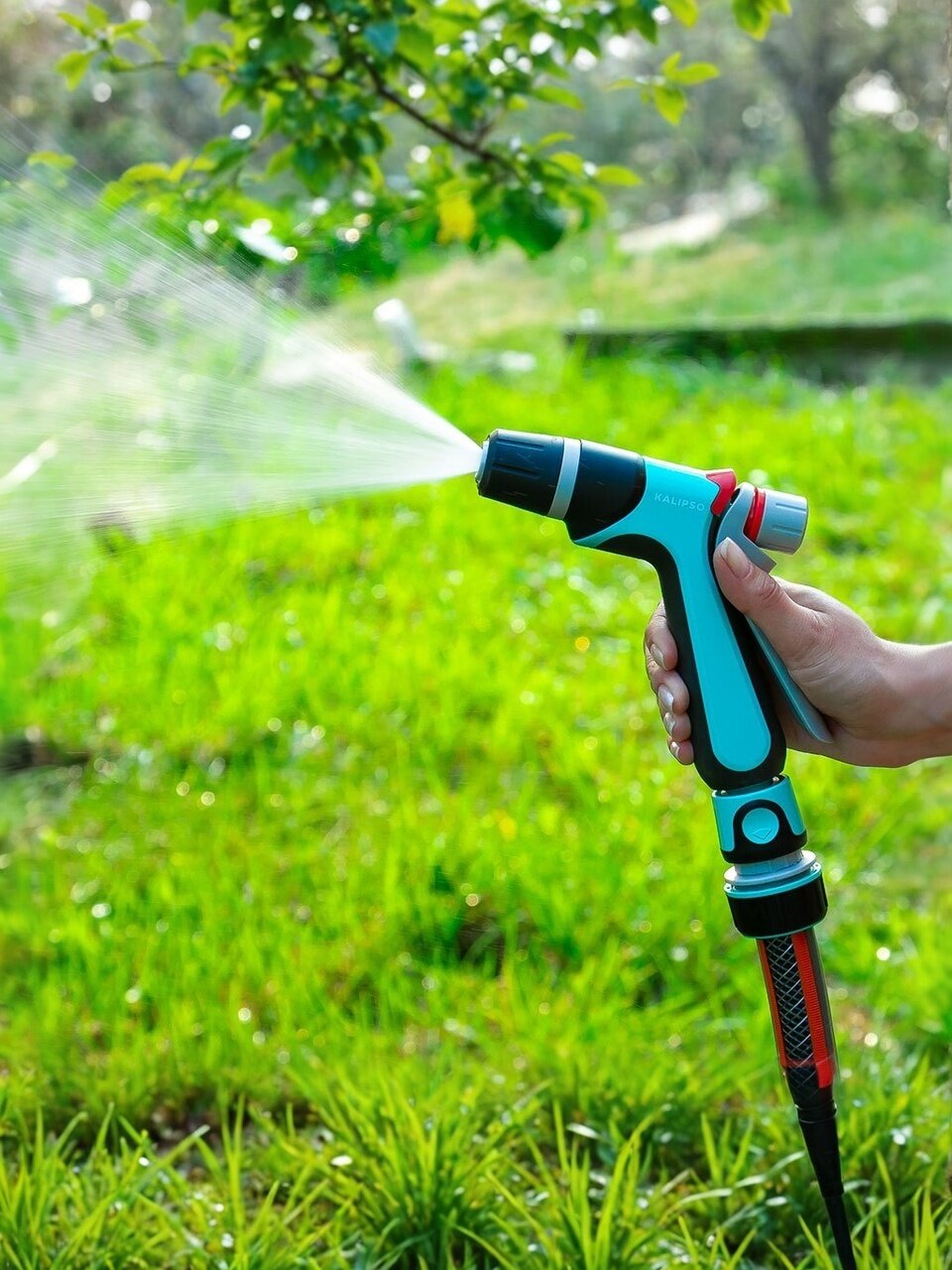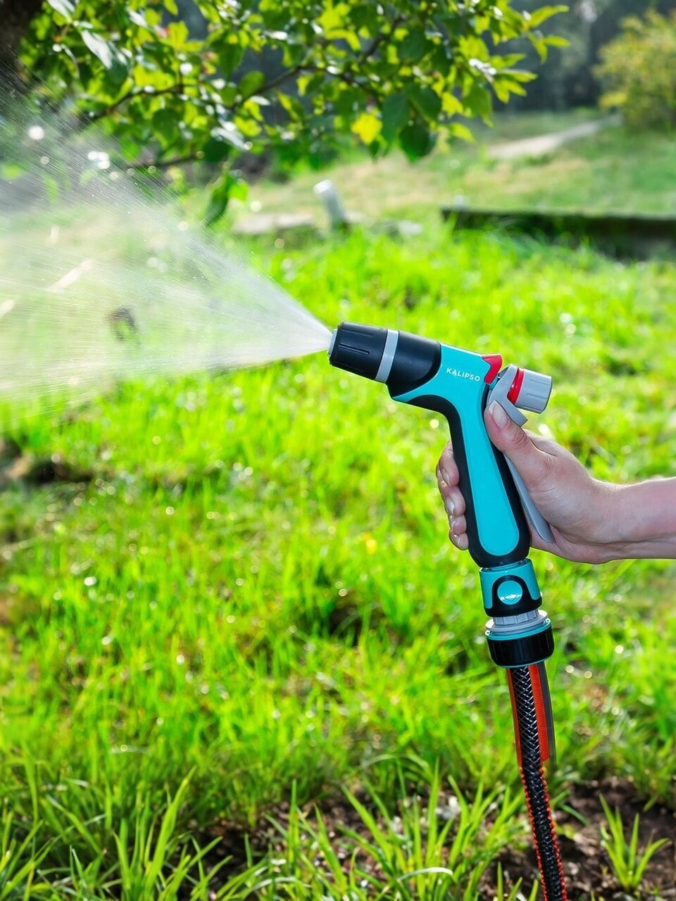 - семь режимов полива для различных задач: от деликатного орошения до мощной струи для очистки дорожек или инвентаря;