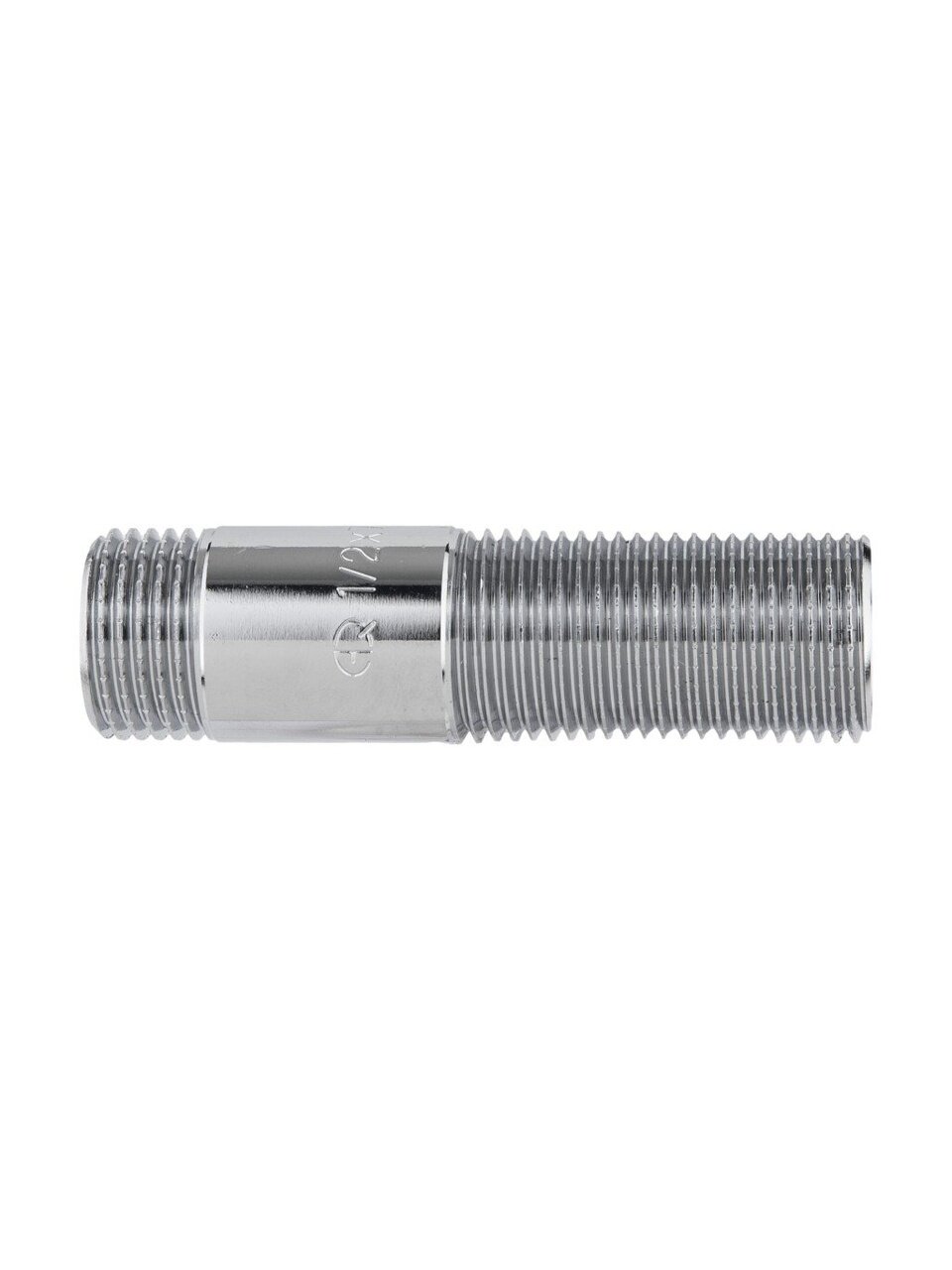 Длина — 75 мм, диаметр подключения — 1/2 дюйма, тип присоединения — наружная резьба (ш-ш), материал — латунь, цвет — серебристый.