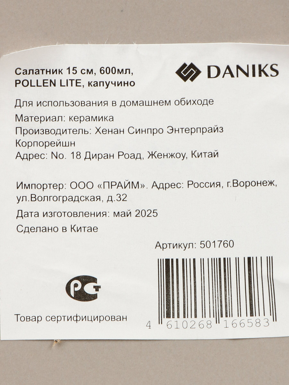 Салатник, керам, 15 см, Pollen lite, Daniks, капучино