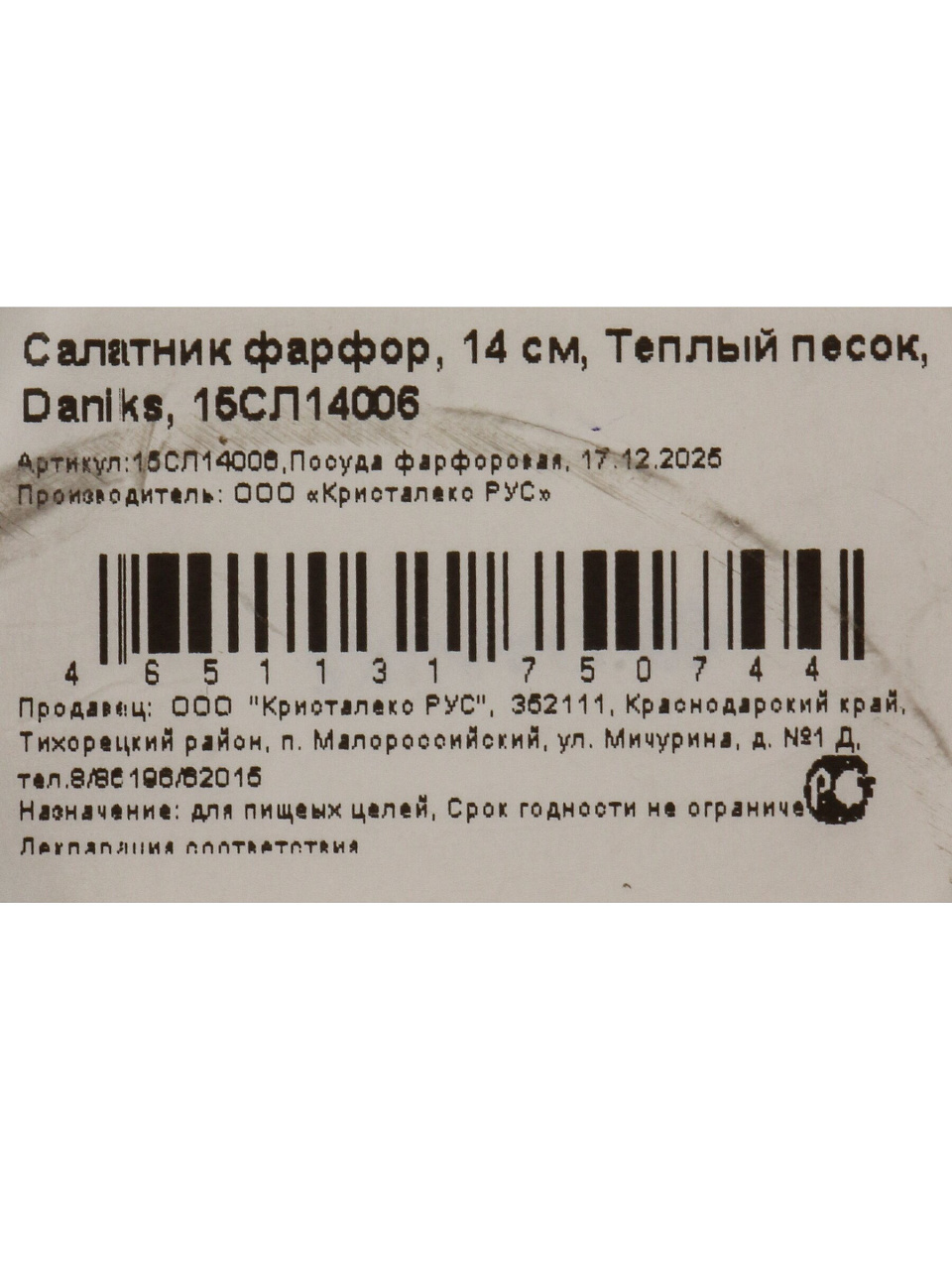Салатник фарфоровый Daniks «Теплый песок», 14 см — современный акцент для стола: стиль, прочность и универсальность для дома и дачи по выгодной цене.