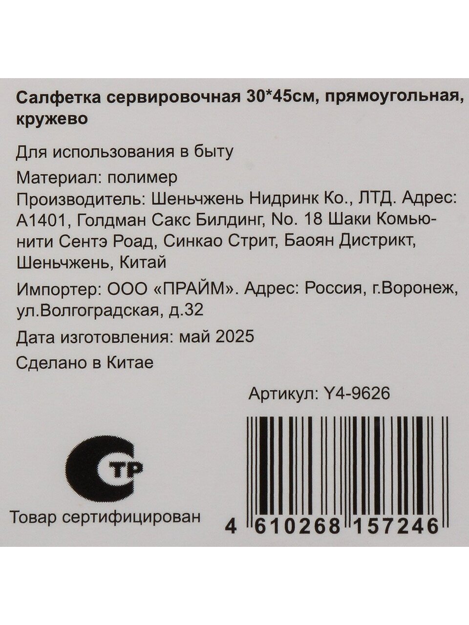 Вы можете приобрести «Салфетка сервировочная полимер, 45х30 см, прямоугольная, кружево, бежевая, Y4-9626» и другие товары в нашем интернет-магазине в Астрахани по низким ценам и с бесплатным самовывозом.