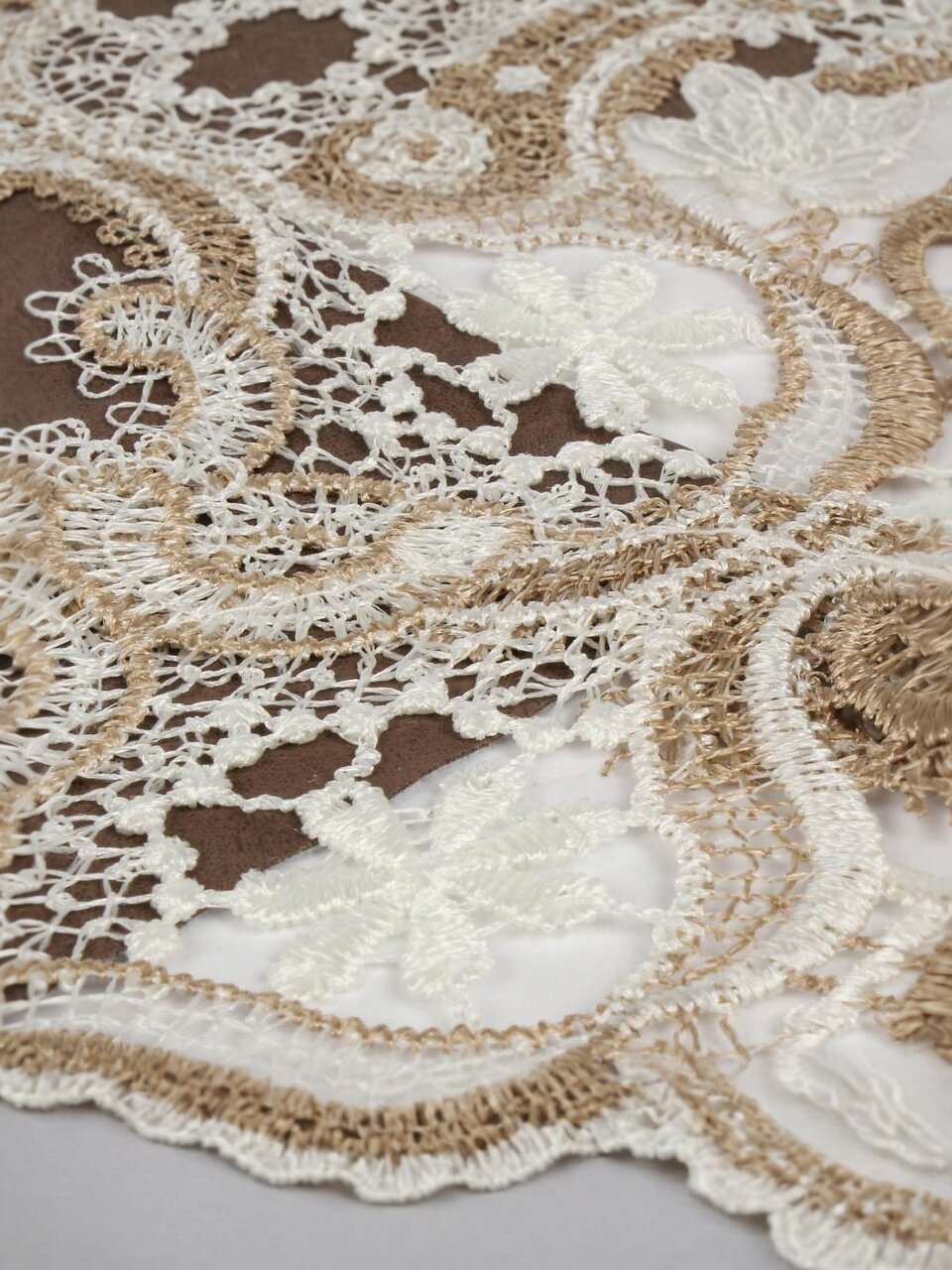 - Декоративное кружево в оттенке мокко — акцент в сервировке и уникальный стиль.