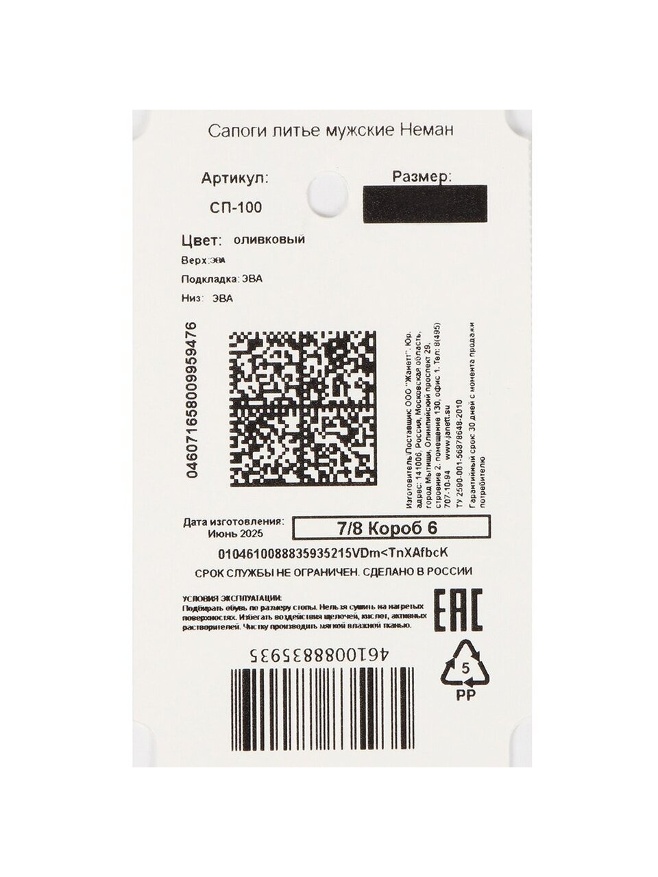 Вы можете приобрести «Сапоги для мужчин, ЭВА, оливковые, р. 43-44, Неман, СП-100» и другие товары в нашем интернет-магазине в Борисоглебске по низким ценам и с бесплатным самовывозом.