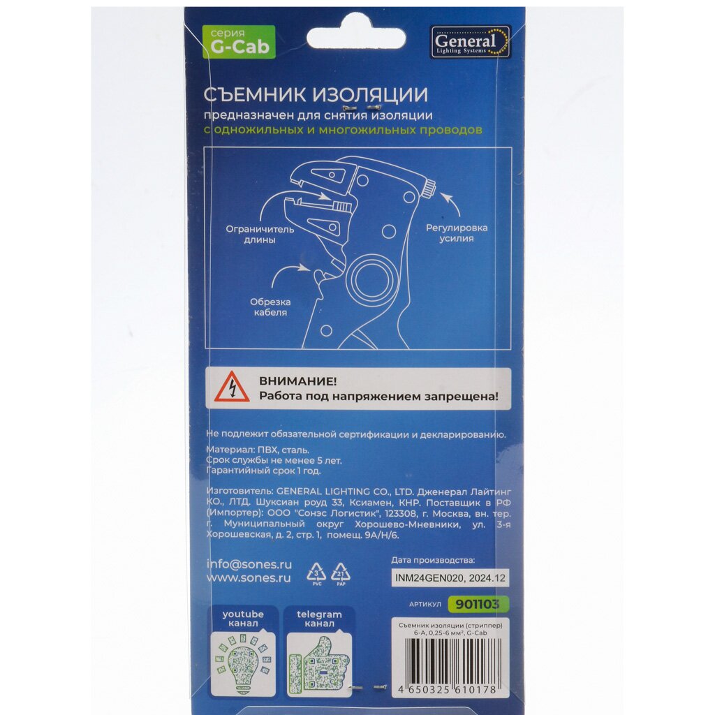 Вы можете приобрести «Съемник изоляции 0.25-6 мм, стриппер, General Lighting Systems, 6-A, G-Cab, 901103» и другие товары в нашем интернет-магазине в Ельце по низким ценам и с бесплатным самовывозом.