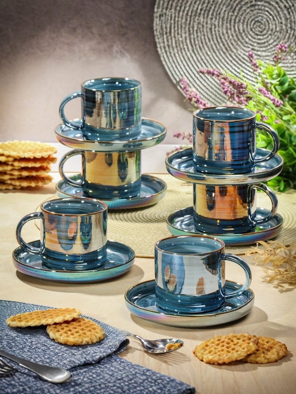 В наборе 12 предметов: 6 чашек по 250 мл и 6 блюдец. Этого достаточно для сервировки на 6 персон.