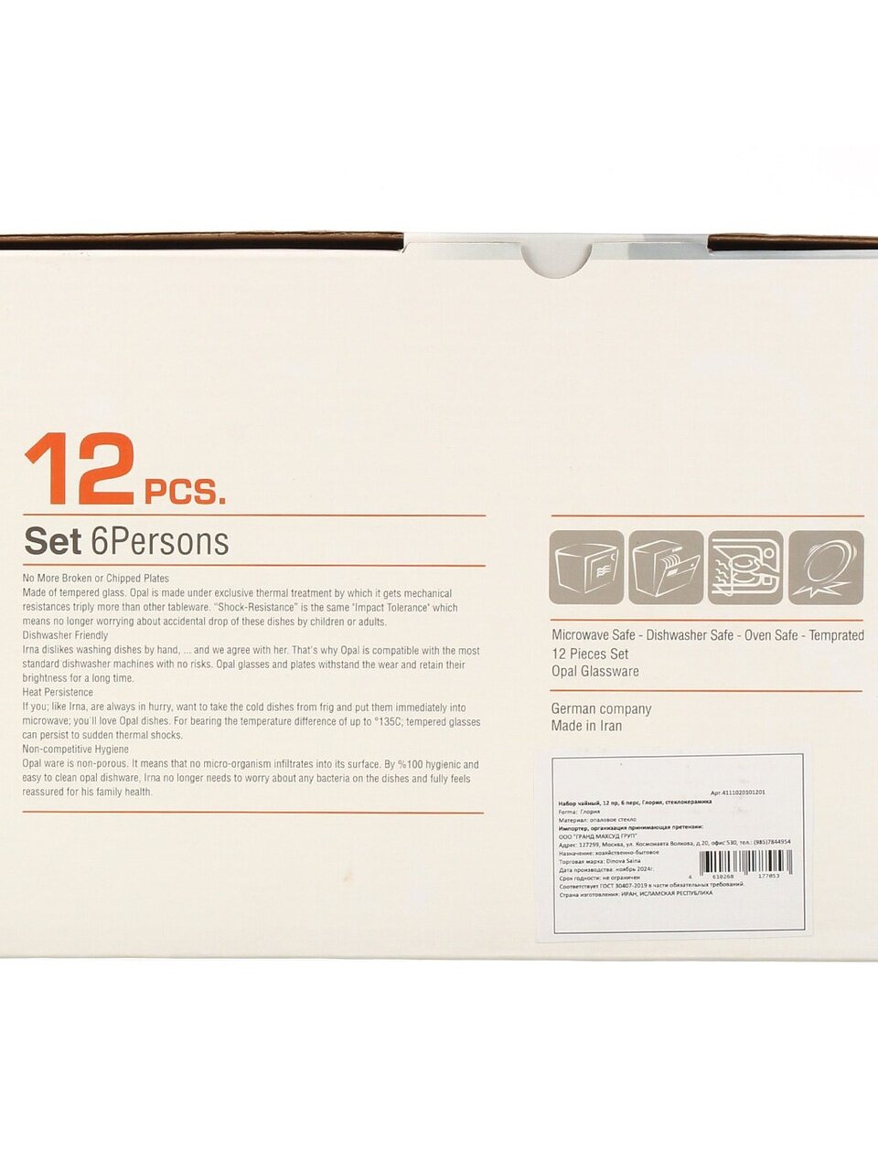 В комплекте 12 предметов: чайные пары (чашка + блюдце) на 6 персон, что удобно для семьи и гостей.
