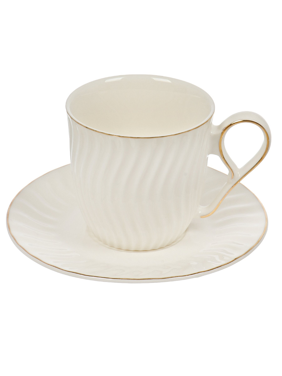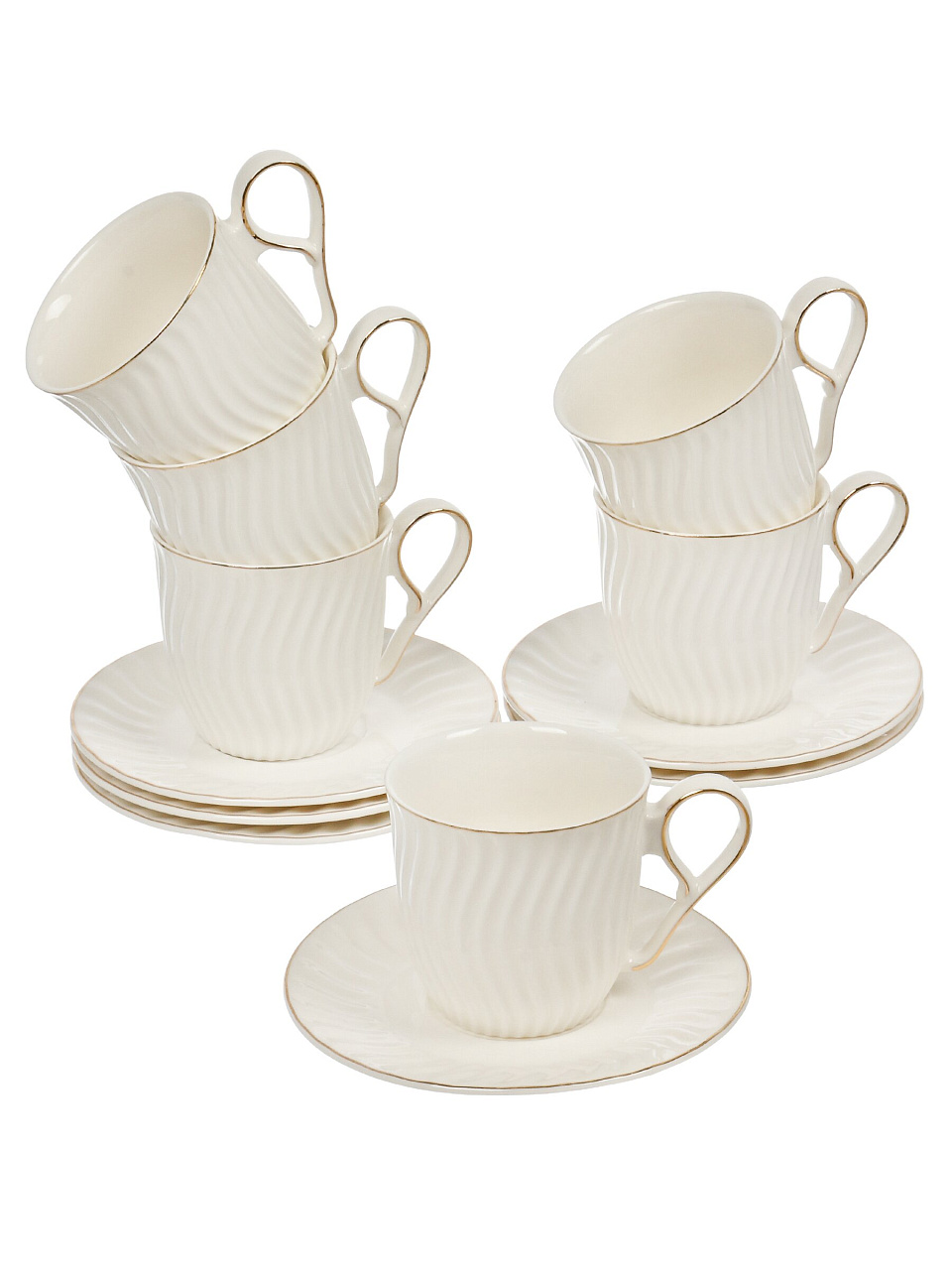 Чайный набор выполнен из высокопрочного фарфора, в комплекте 12 предметов: 6 чашек и 6 блюдец.