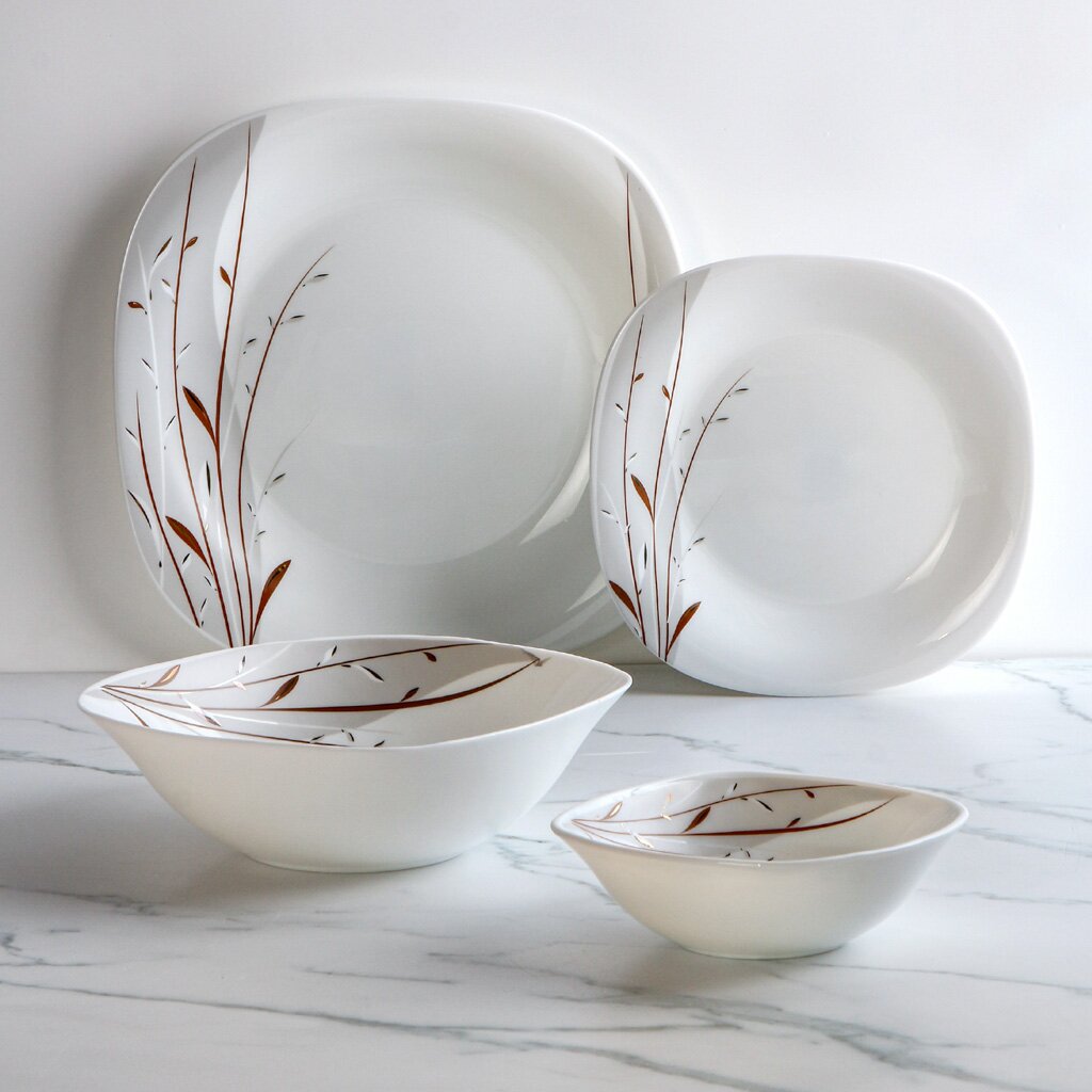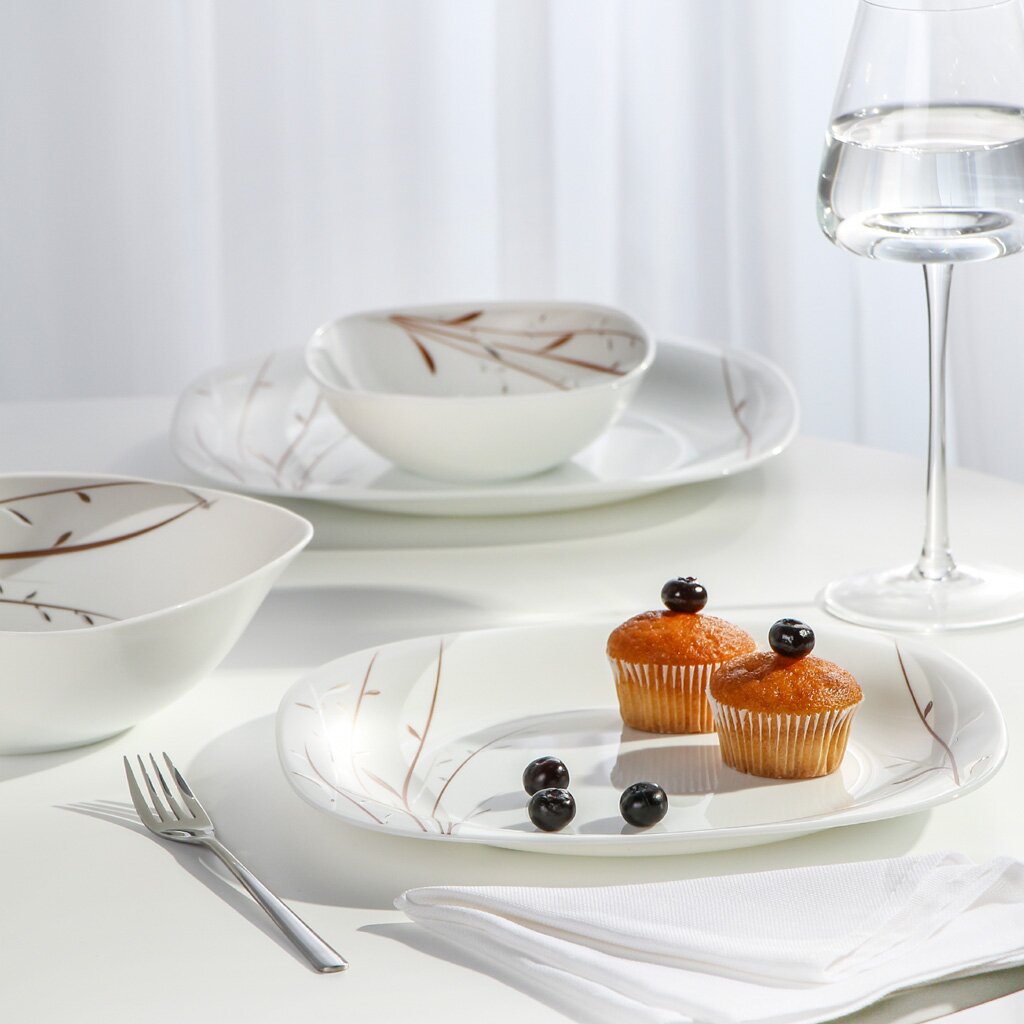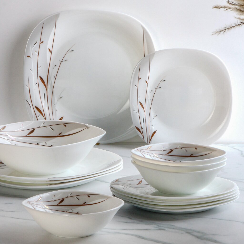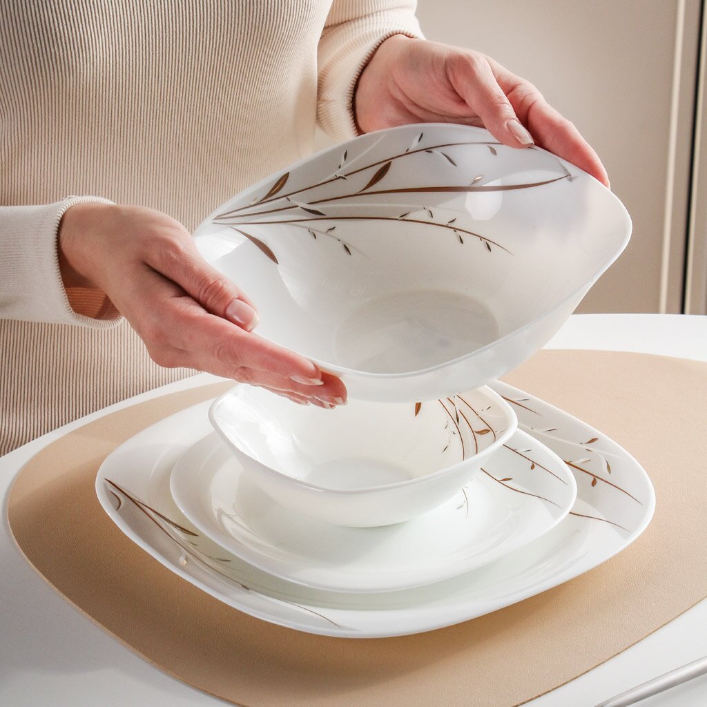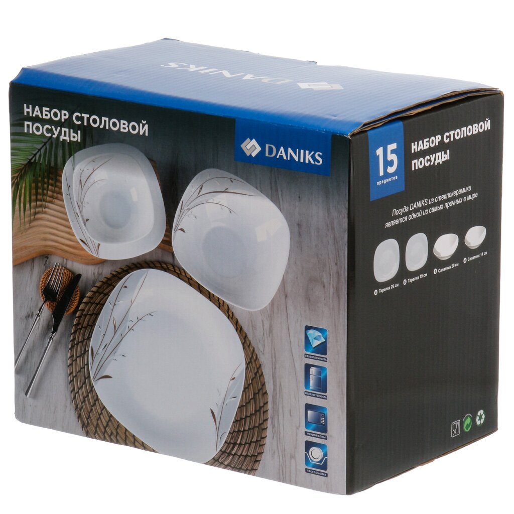 Столовый сервиз из стеклокерамики Daniks Орфей на 4 персоны — 15 предметов для стильной сервировки дома или дачи. Белый цвет, подходит для СВЧ и посудомоечной машины.