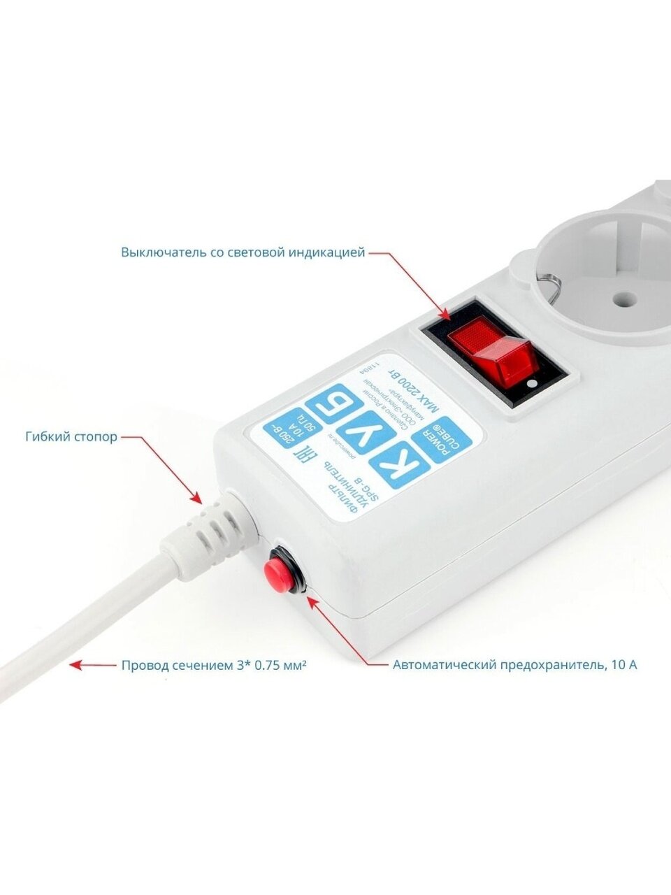 Сетевой фильтр позволяет подключать к электросети одновременно до 5 различных устройств (компьютеры, оргтехнику, электроприборы), необходим, чтобы уберечь приборы от поломки в случае скачков напряжения или короткого замыкания.