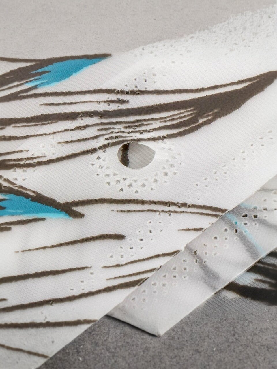- С закреплением не возникнет проблем: по верхнему уплотненному краю полотна имеются отверстия для колец;