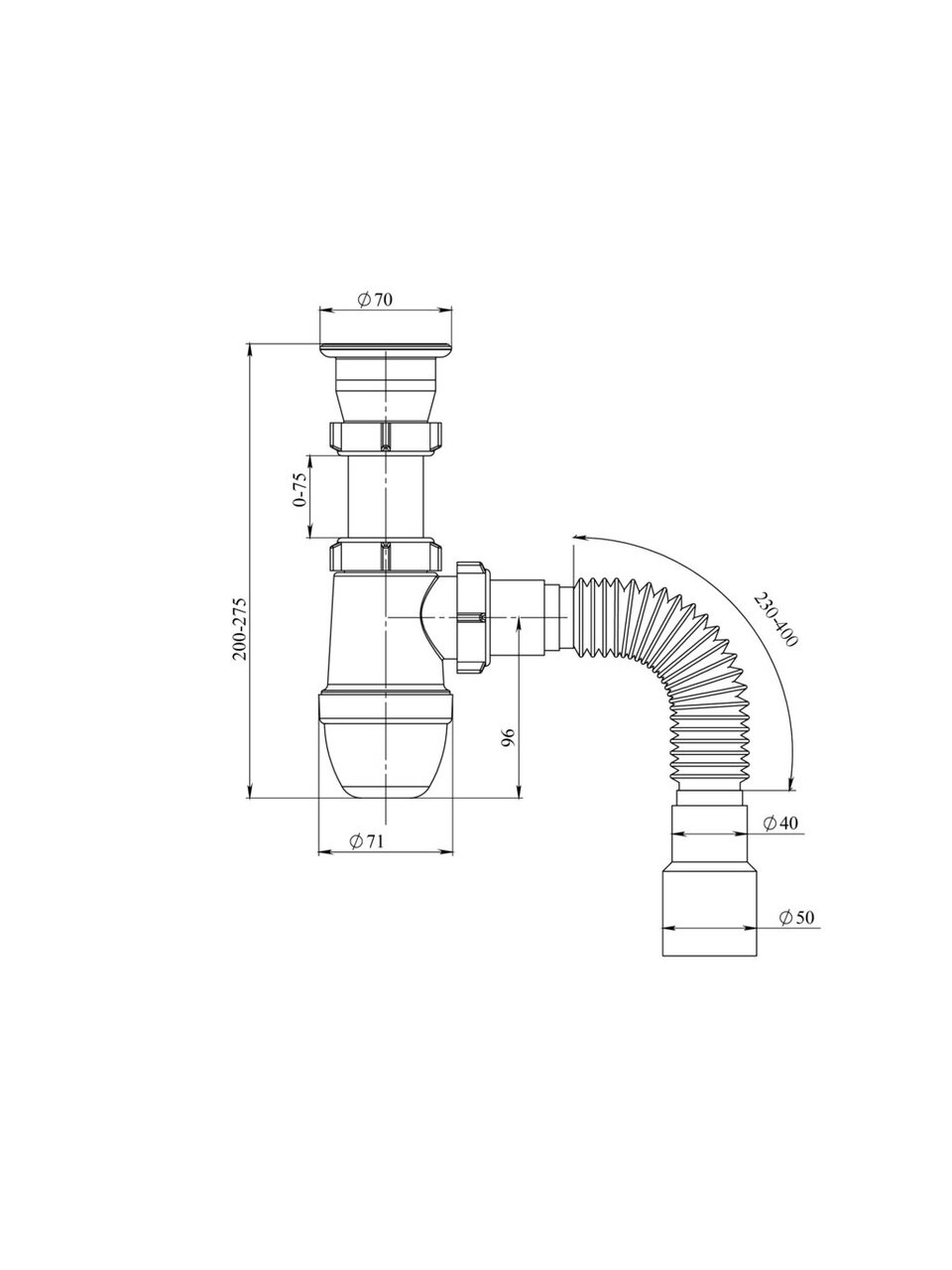 - Вид сифона: бутылочный.