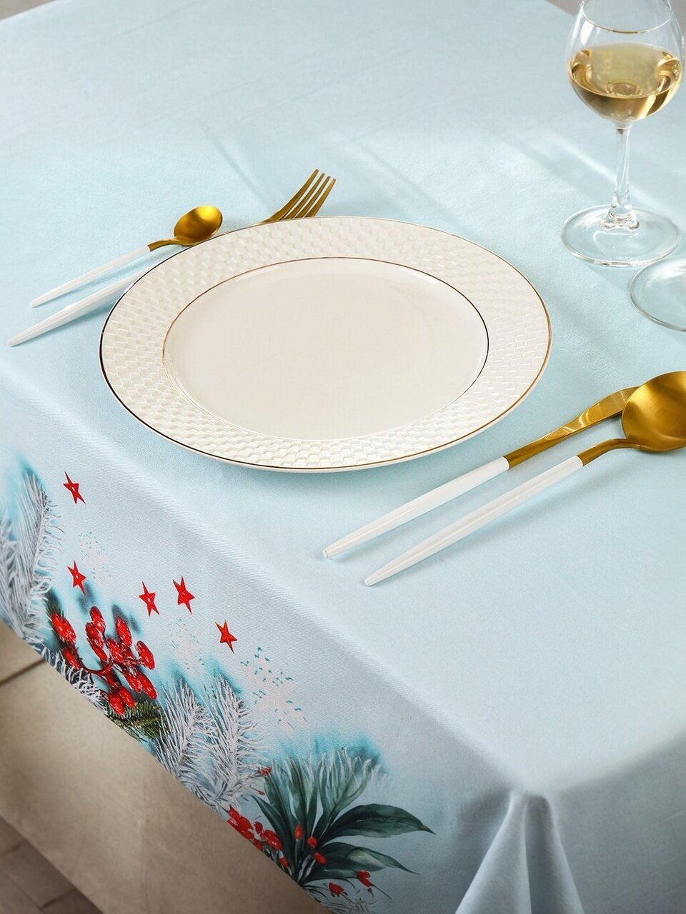 Скатерть предназначена для защиты стола от загрязнений, красивой сервировки и смягчения звуков столовых приборов о столешницу.