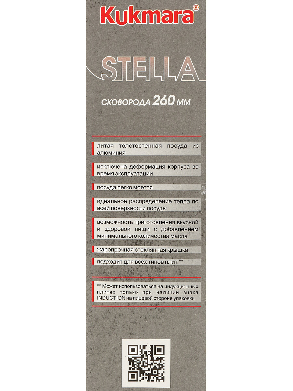 Нет, модель Kukmara Stella с гранитным покрытием предназначена для газовых, электрических и стеклокерамических плит, но не совместима с индукцией.