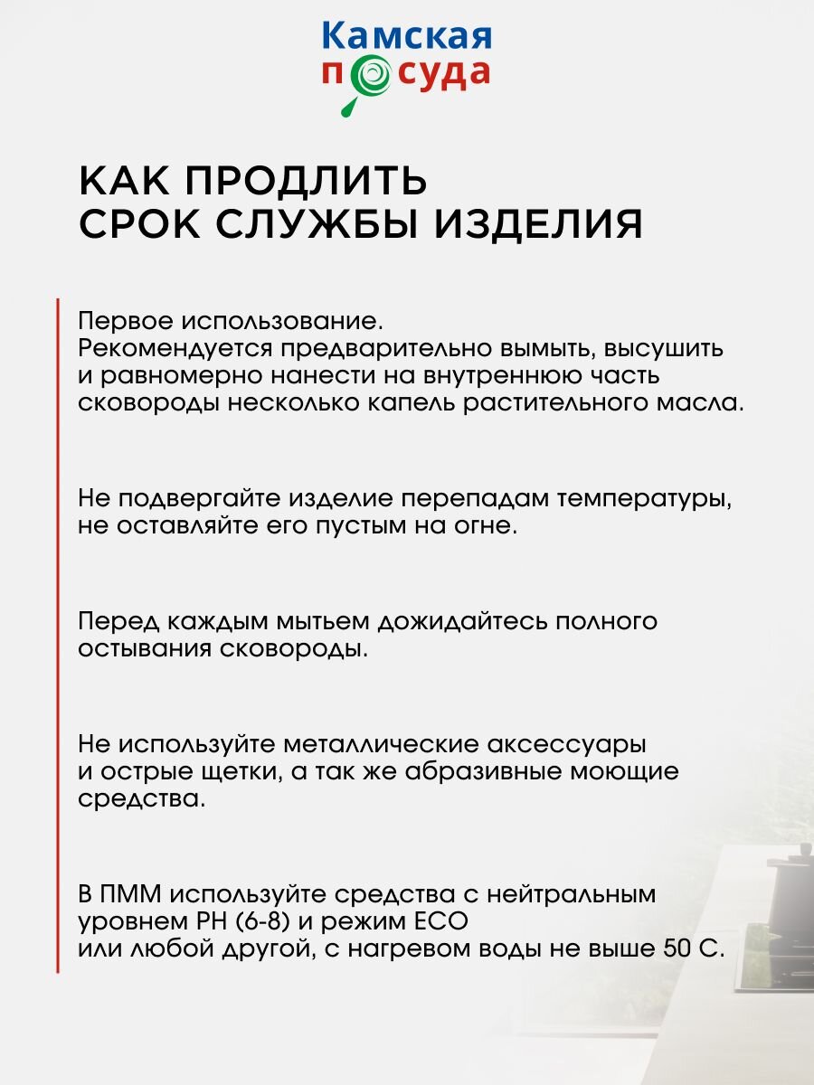 Оформите заказ на чугунную сковороду с выгодой: официальная гарантия 12 месяцев, быстрая доставка, проверенное качество от российского производителя. Успейте купить недорого сковороду для дачи, дома или в подарок — товар ограничен!