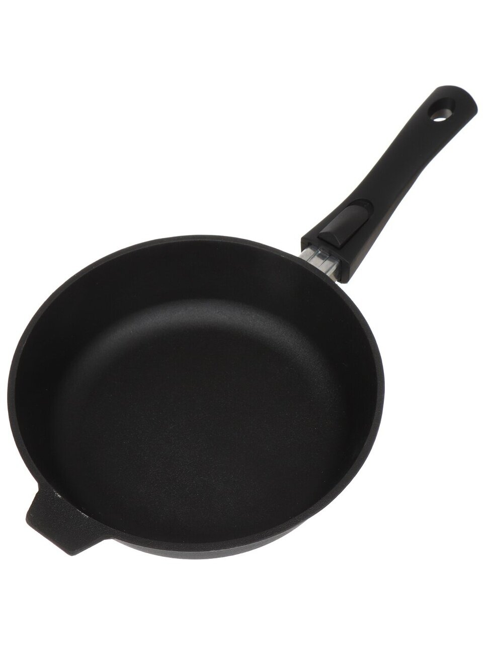 Съемная ручка облегчает хранение, позволяет использовать сковороду в духовке и на открытом огне, а также удобно мыть и переносить.