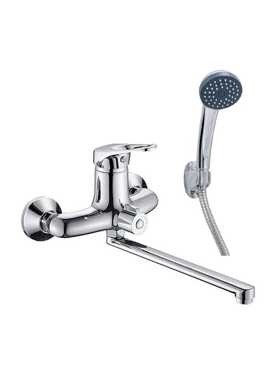 - Универсальность: длинный поворотный излив и наличие лейки делают смеситель отличным решением для ванной, душа, использования на даче или в квартире
