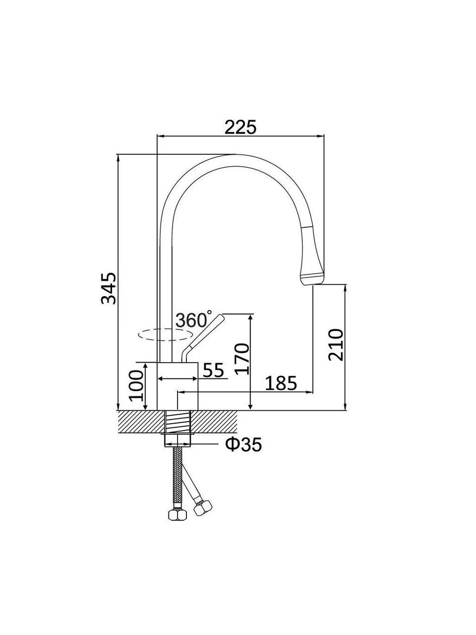 Высокий излив (21 см) облегчает мытьё посуды, наполнение больших кастрюль и использование фильтров-насадок, при этом вода не разбрызгивается по кухне.