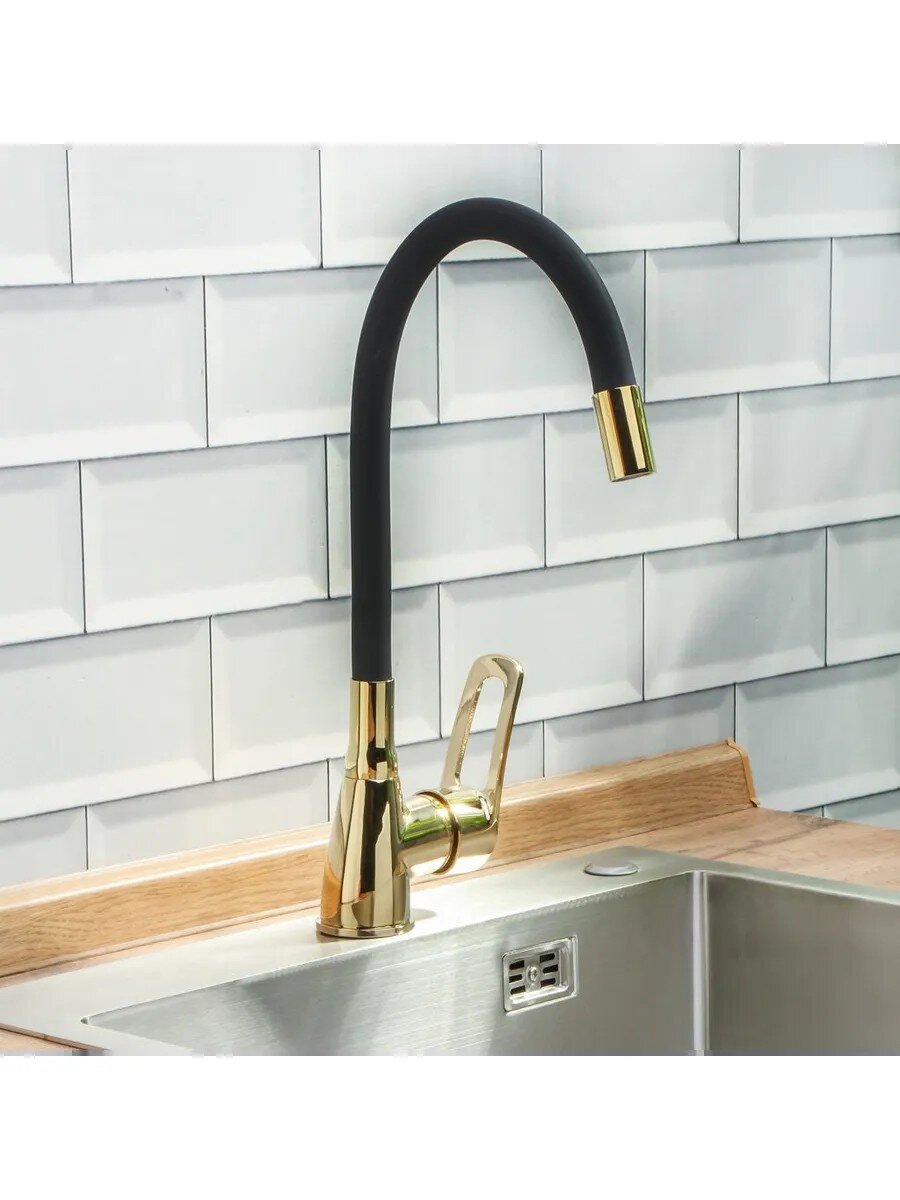 Смеситель для кухни Aqwin с гибким изливом, золотой, A57150-4 — стиль, долговечность и удобство управления одним движением. Установите за 15 минут и забудьте о замене на годы.