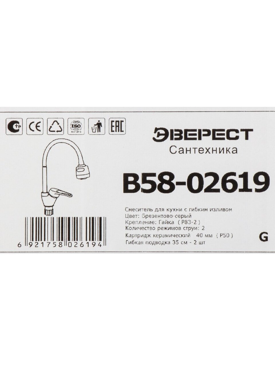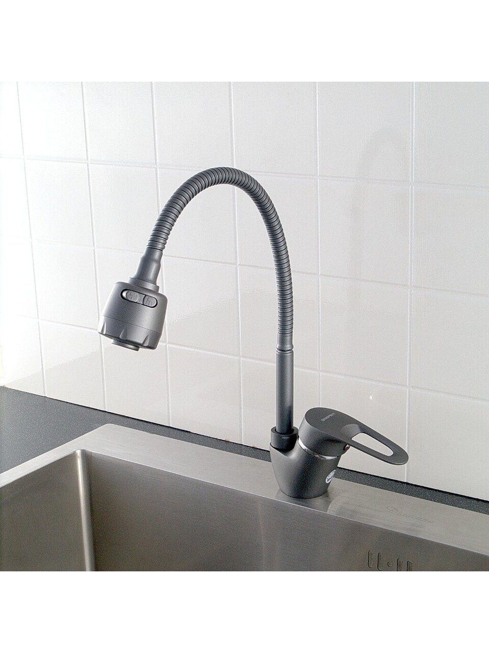 Смеситель для кухни Эверест B58-02619: гибкий излив, 2 режима аэратора, стильный брезентово-серый — идеальное решение для современной кухни, дома и дачи.