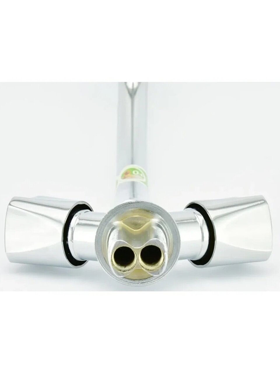 Смеситель для кухни Juguni 0402.657 — это современное решение для тех, кто ищет, какой смеситель выбрать для кухни, чтобы он был долговечным, удобным и доступным по цене. Модель оснащена поворотным высоким изливом (16,5 см), что позволяет легко мыть крупную посуду и наполнять высокие ёмкости. Керамическая кран-букса обеспечивает надёжную герметичность и мягкое переключение, что особенно важно при ежедневном использовании.