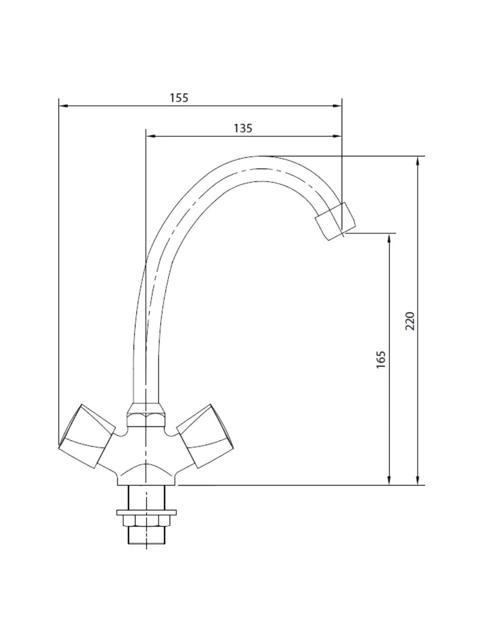 Смеситель устанавливается в отверстие диаметром 55 мм, подходит для большинства стандартных моек.