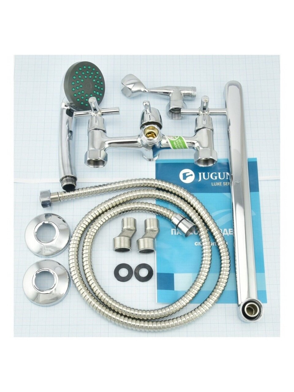 Смеситель для ванны Juguni JGN0141: надежный выбор с длинным изливом 35 см, аэратором и лейкой — оптимальное решение для дома и дачи по выгодной цене.