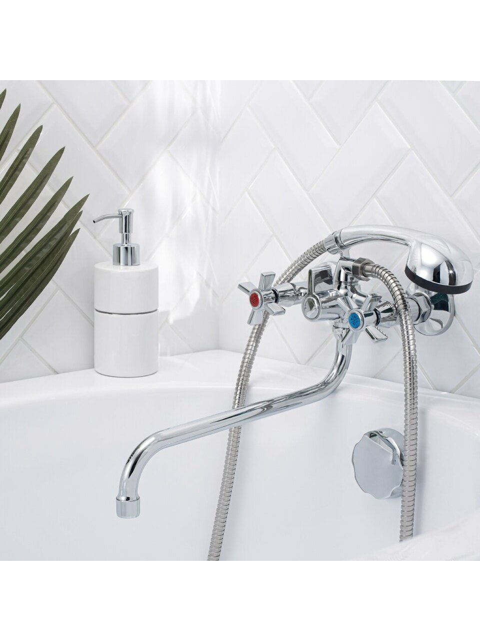 - Корпус из цинкового сплава с глянцевым хромом: устойчив к коррозии, длинный излив 29,5 см — удобно для больших ванн
