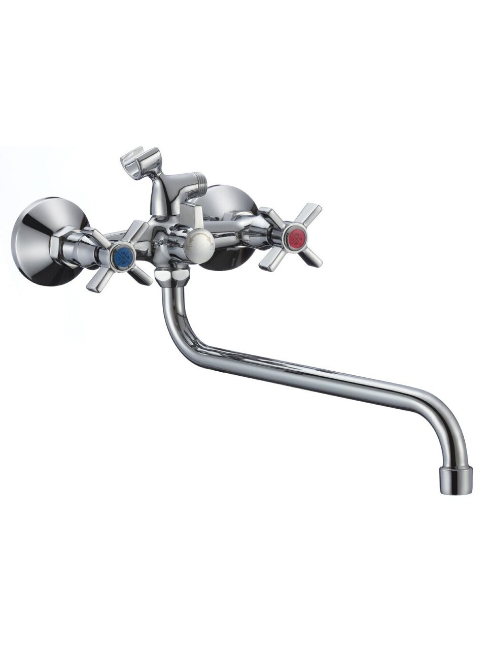 Смеситель для ванны РМС SL118-140: долговечный хром, керамическая кран-букса, длинный поворотный излив 29,5 см — идеальный выбор для дома и дачи.