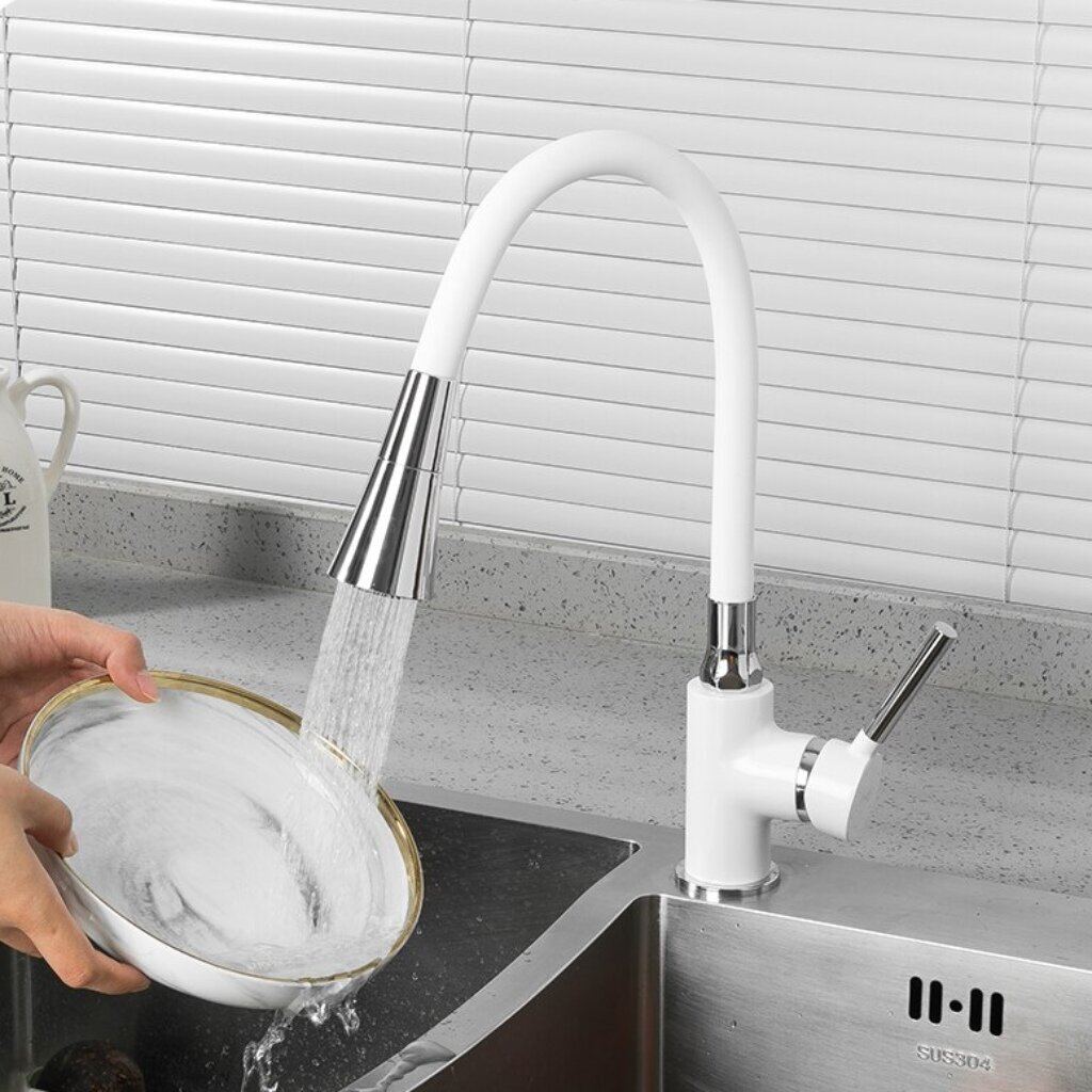 Смеситель для кухни Frap F4044-8 с гибким изливом: современное решение для комфортной мойки. Латунь, белый цвет, высота 22,3 см — удобно, стильно, долговечно.