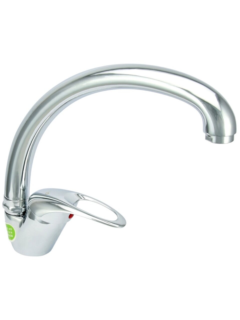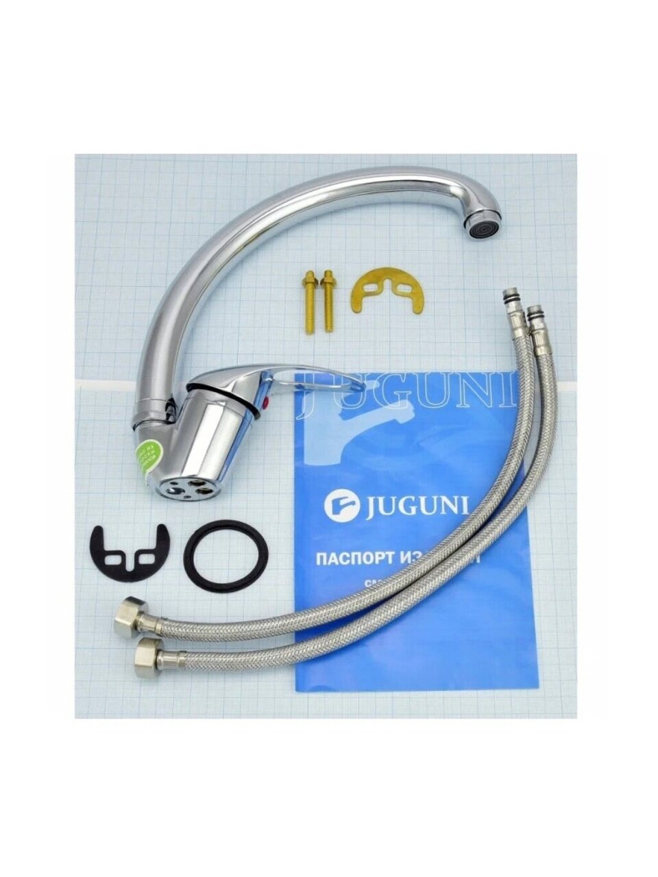 Смеситель для кухни Juguni JGN0420/С с высоким поворотным изливом 21 см — долговечное решение из силумина с хромированным покрытием, идеальный выбор для современной кухни.
