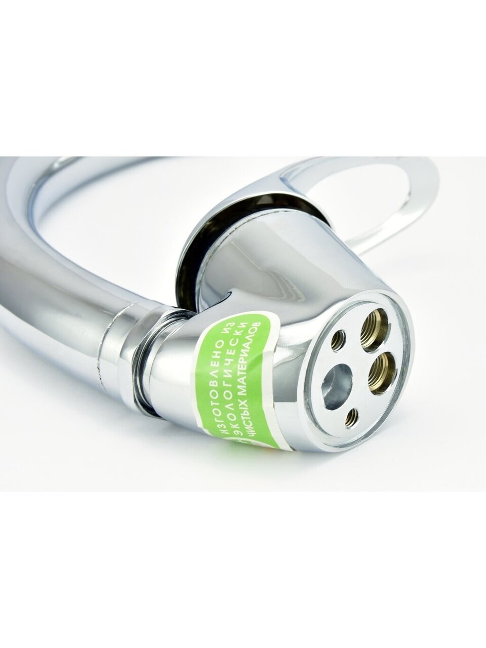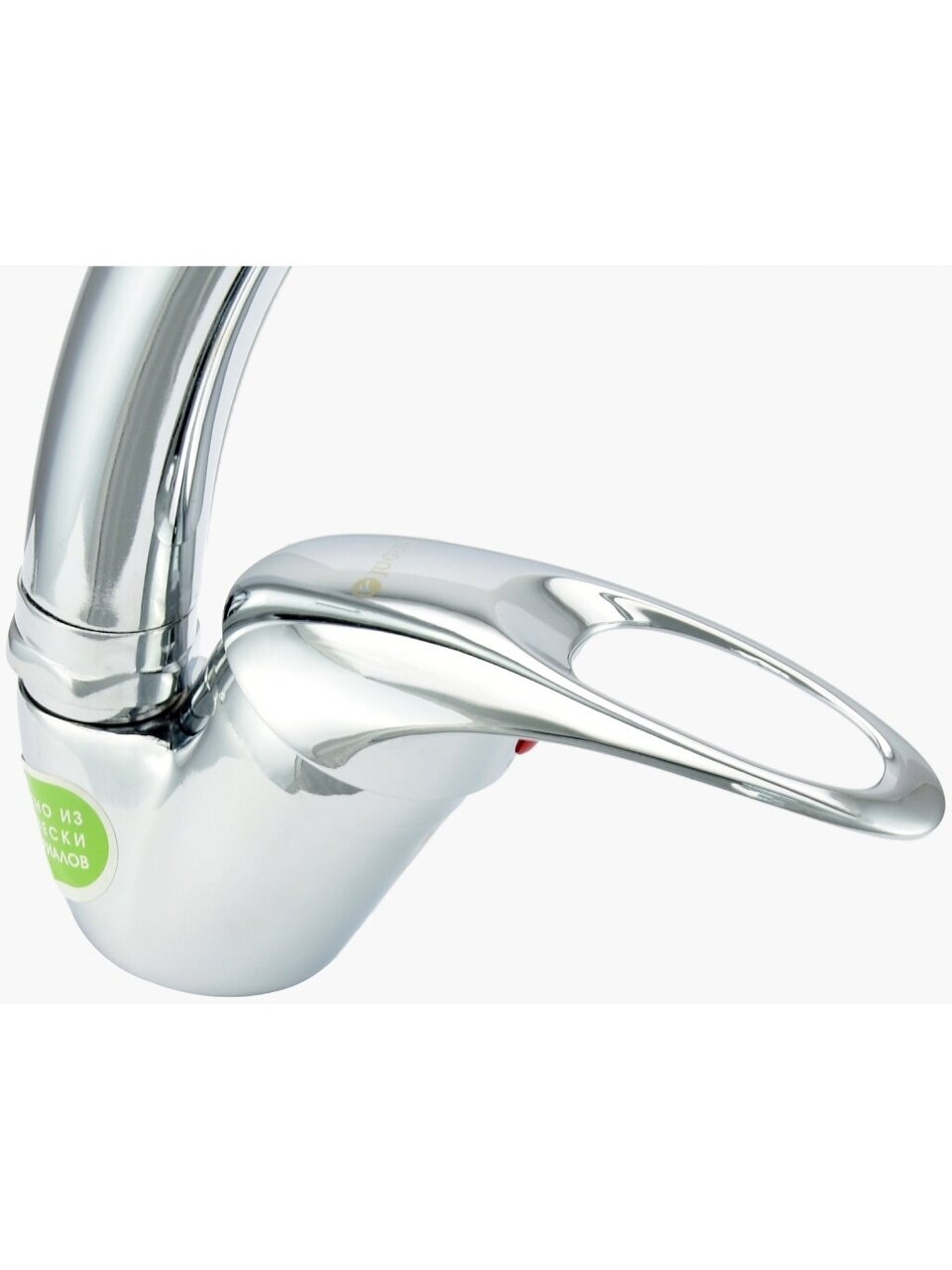 Корпус изготовлен из силумина с глянцевым хромированным покрытием, излив высокий (21 см), поворотный, с аэратором для мягкой струи воды.