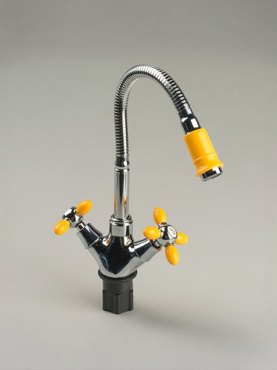 Смеситель для кухни Эверест B58-071B с гибким изливом: стильный желтый акцент, долговечная керамика, удобство управления водой для современной кухни