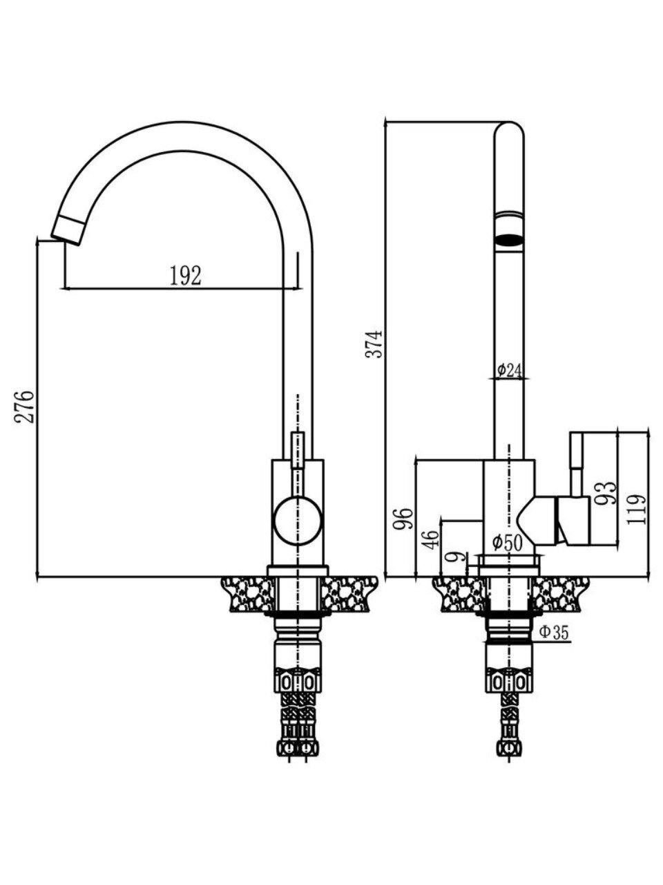 Модель монтируется горизонтально, крепится гайкой в 1 отверстие диаметром 35 мм. Подходит для большинства стандартных кухонных моек.
