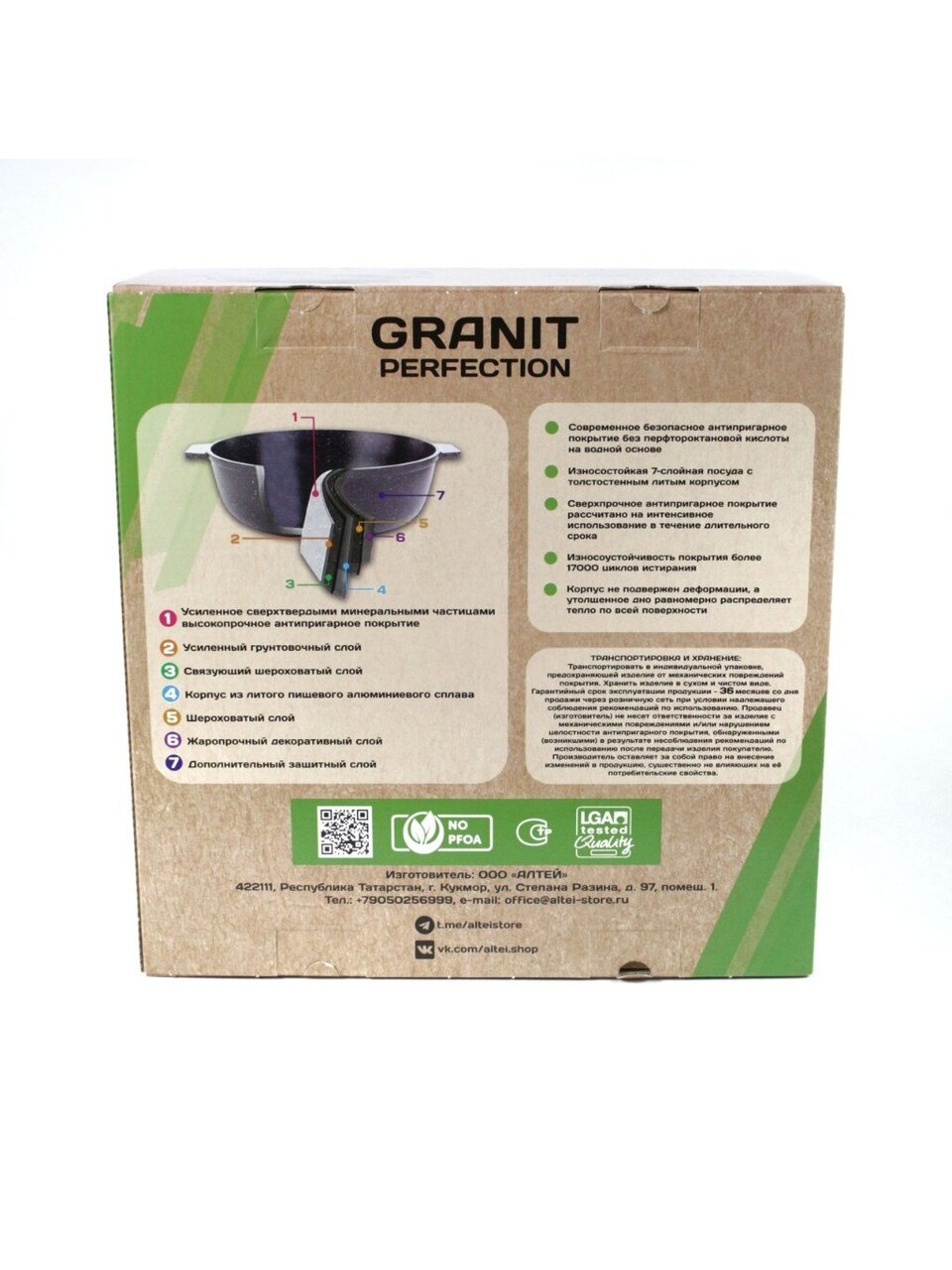 Сверхпрочное антипригарное покрытие Granit Perfection — это инновация, которая сделает вашу кухню ещё более функциональной и удобной. Благодаря усилению сверхтвёрдыми минералами нового поколения, близкими по твёрдости к алмазу, это покрытие обеспечивает невероятную прочность и долговечность.Теперь вы сможете использовать металлические кухонные принадлежности без риска повреждения поверхность антипригарного покрытия. Это значительно упрощает процесс готовки и делает его более безопасным.