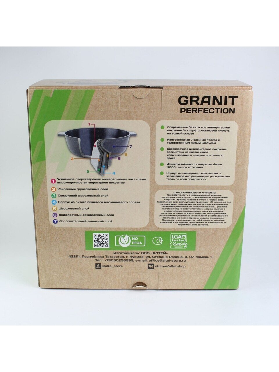 Жаровни Алтей Granit Perfection имеют износостойкое и безопасное антипригарное покрытие.