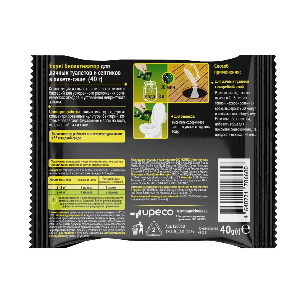 Быстрое решение для дачного туалета и септика: биосостав Expel 40 г — эффективное устранение запаха и разложения отходов без химии.