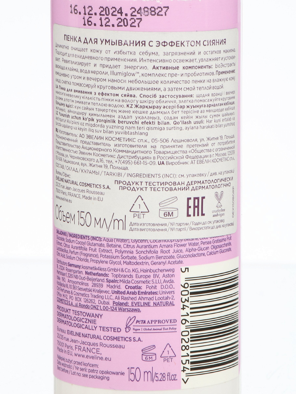 Пенка для умывания Eveline с эффектом сияния — мягкое очищение и естественное сияние кожи, 150 мл. Ощутимый результат с первого применения.