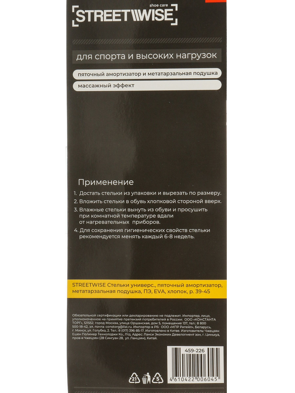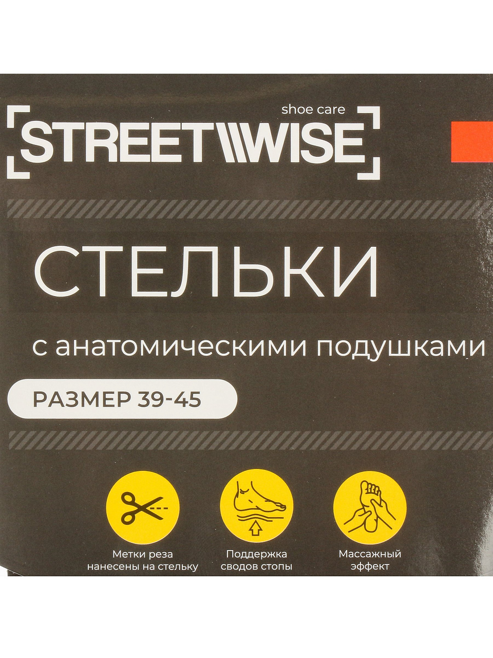 Стельки Streetwise 39-45 с пяточным амортизатором — комфорт и поддержка стопы для повседневной обуви, универсальный размер, долговечные материалы, выгодная цена.